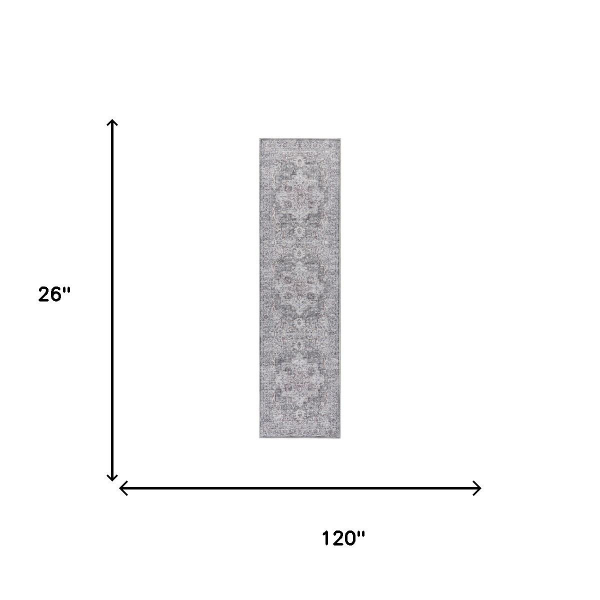 This 10-foot gray and ivory floral power loom distressed washable runner rug, is a great way to add warmth to a room. This runner shaped rug features a floral design in gray and ivory to give it visual interest. A classic shape marries with good looking design for your space Area Rugs help to give warmth and sense of home to your space. 0.28-inch H x 26.00-inch W x 120.00-inch D