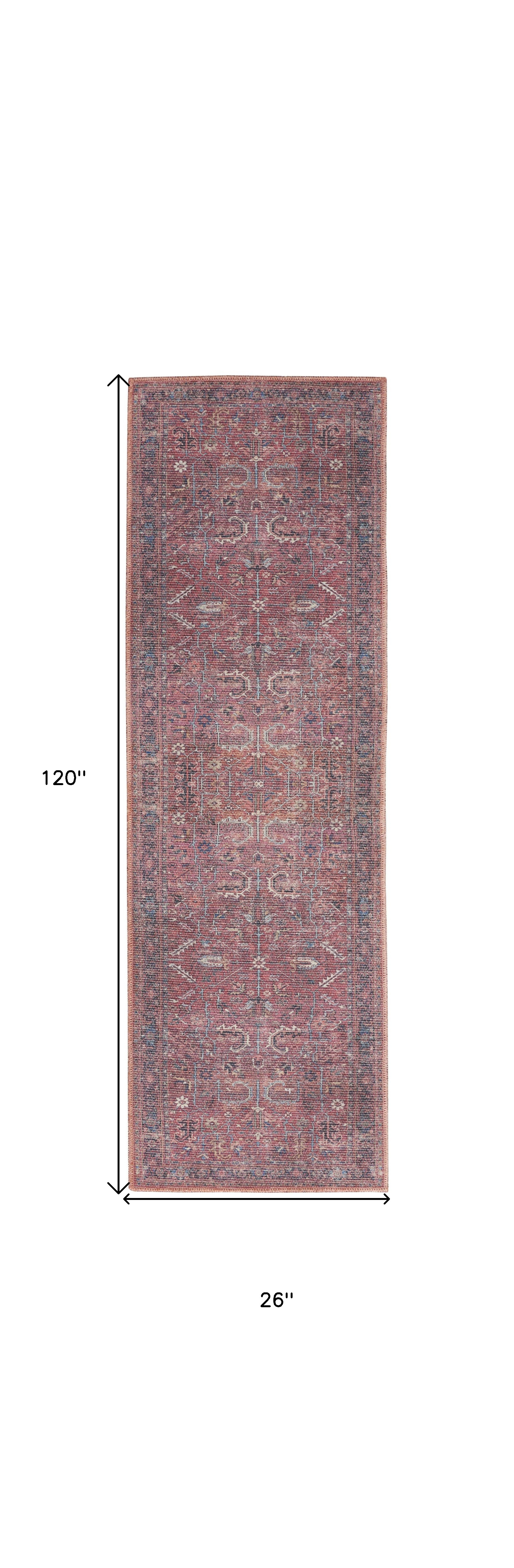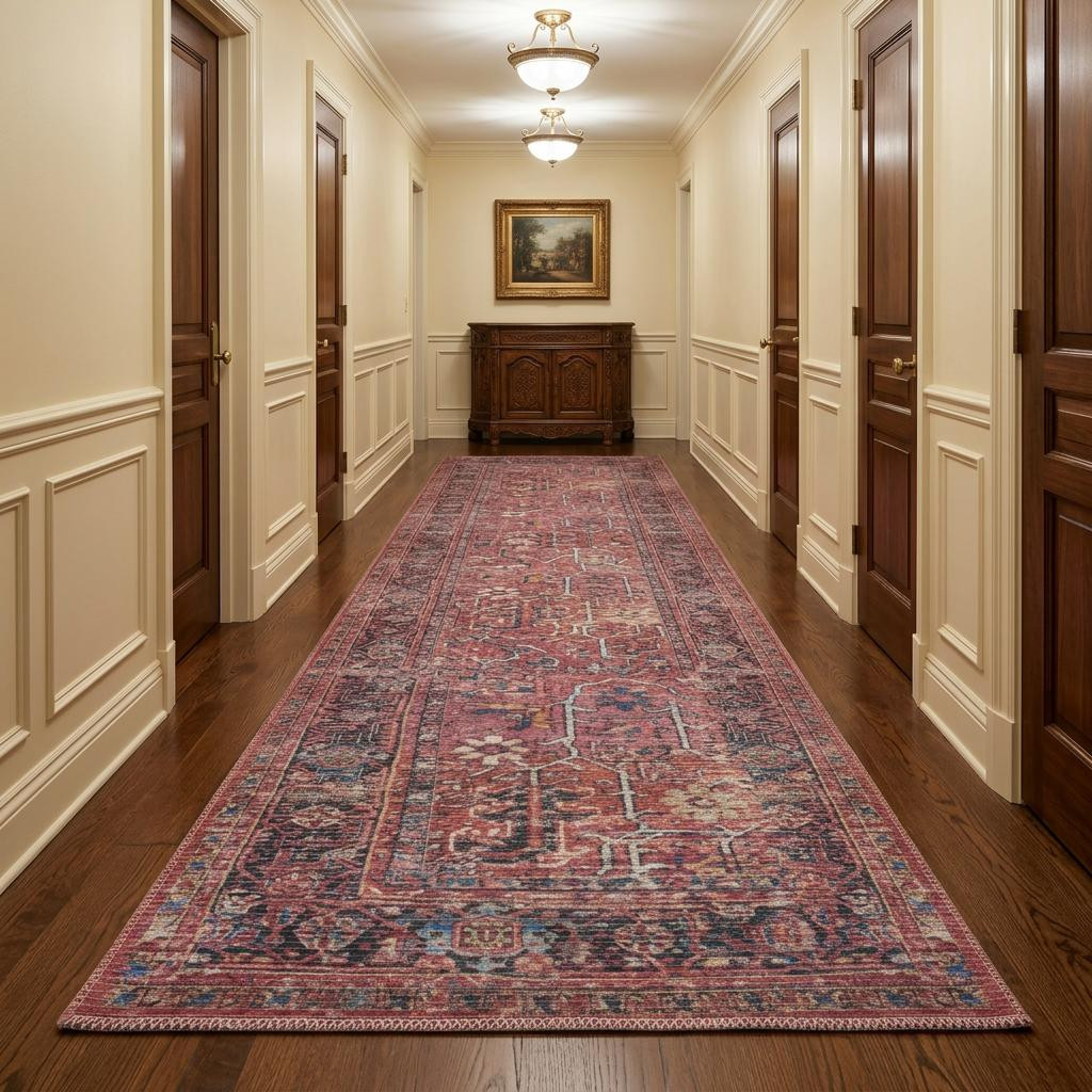 This 10-foot blue and red floral power loom distressed washable runner rug, is a great way to add warmth to a room. This runner shaped rug features a floral design in blue and red to give it visual interest. A classic shape marries with good looking design for your space Place this area rug against a hardwood or tile floor and it will enliven your living space with style and sophistication. 0.28-inch H x 26.00-inch W x 120.00-inch D