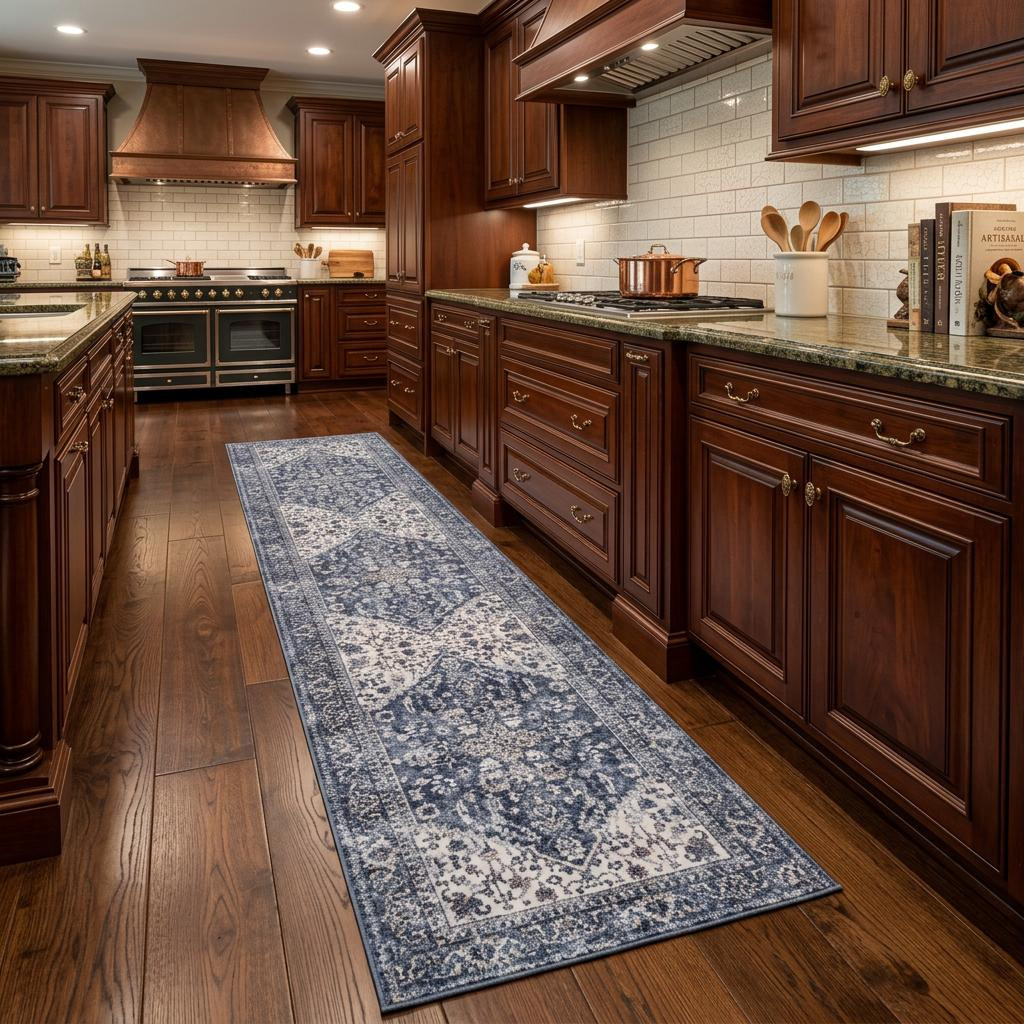 loom distressed washable runner rug, distressed washable runner rug, washable runner rug, blue ivory floral power loom, floral power loom distressed washable |