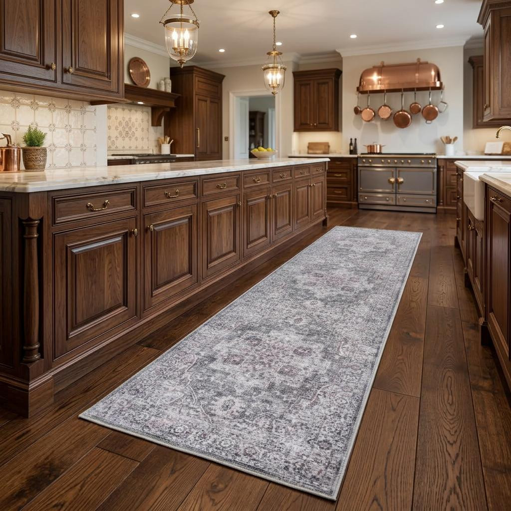 loom distressed washable runner rug, distressed washable runner rug, washable runner rug, floral power loom distressed washable, gray ivory floral power loom |