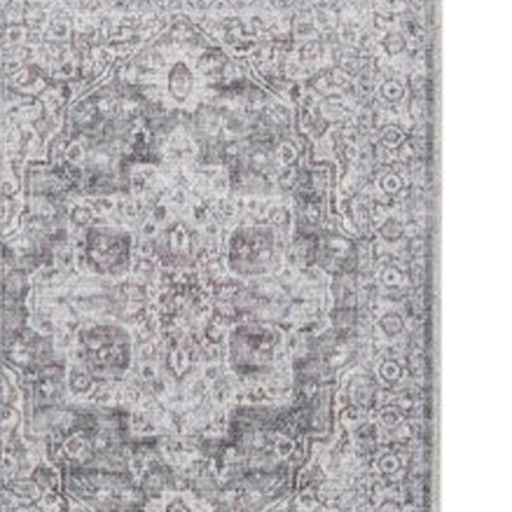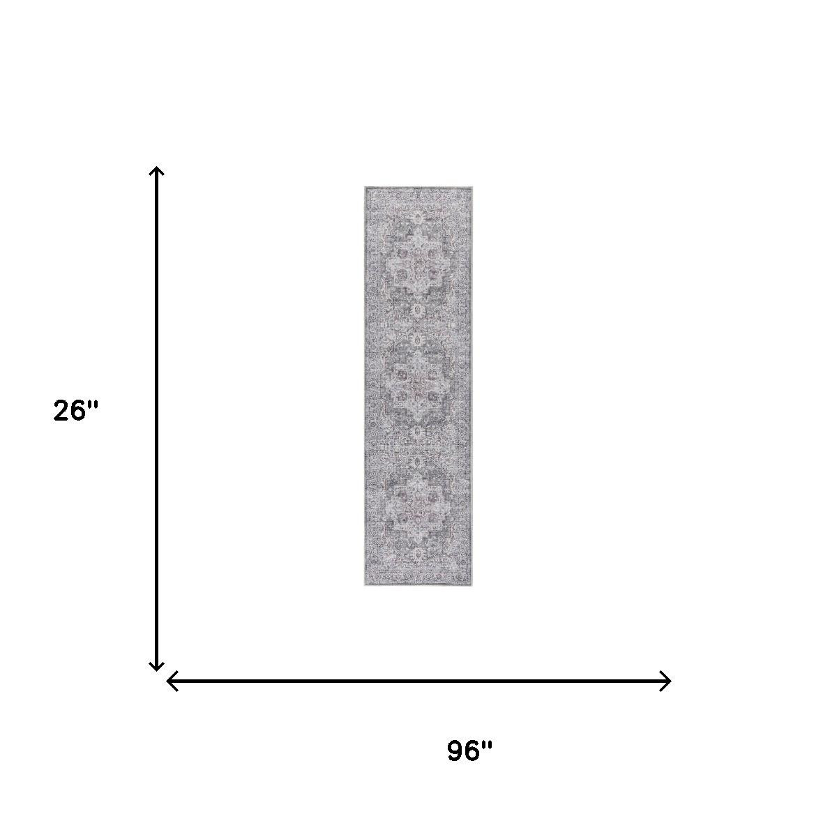 Add some artistry to your room with this 8-foot gray and ivory floral power loom distressed washable runner rug. This runner shaped rug features a floral design in gray and ivory to give it visual interest. A classic shape marries with good looking design for your space Area Rugs help to give warmth and sense of home to your space. 0.28-inch H x 26.00-inch W x 96.00-inch D