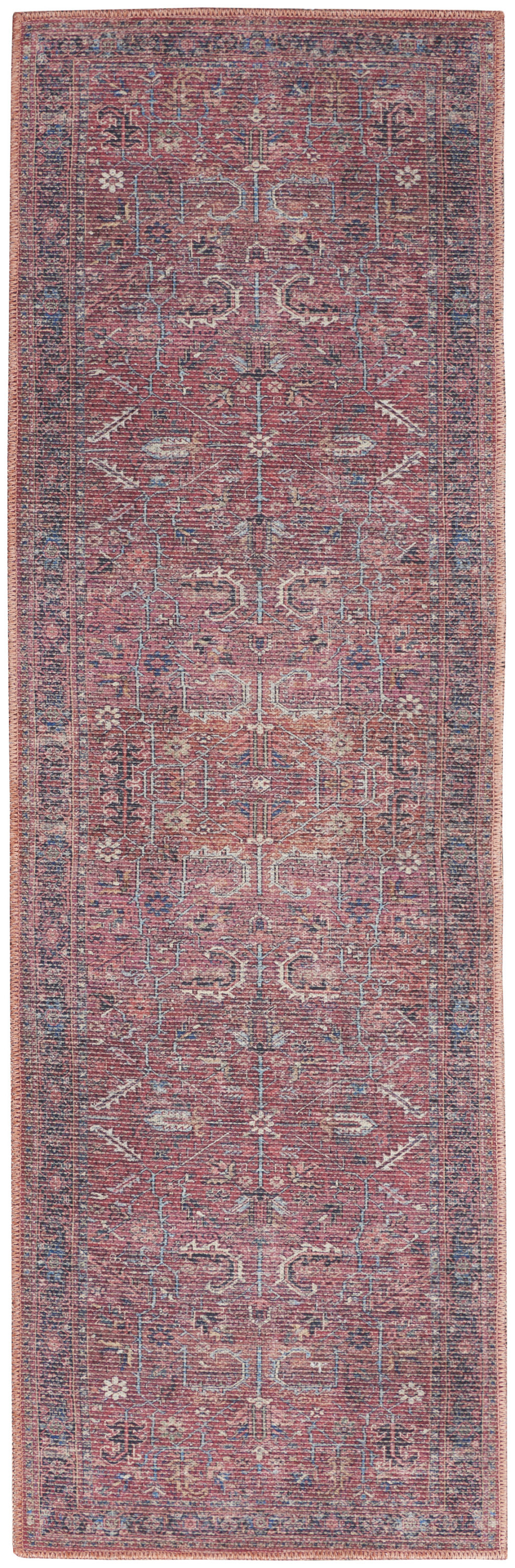 Set an inviting tone in your space with this 8-foot blue and red floral power loom distressed washable runner rug. This runner shaped rug features a floral design in blue and red to give it visual interest. A classic shape marries with good looking design for your space Area Rugs help to give warmth and sense of home to your space. 0.28-inch H x 26.00-inch W x 96.00-inch D