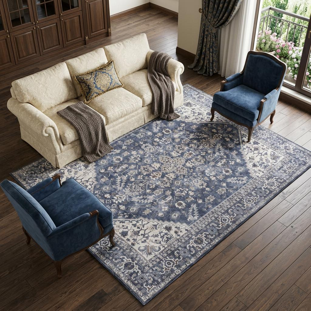 loom distressed washable area rug, distressed washable area rug, washable area rug, floral power loom distressed washable, blue ivory floral power loom |