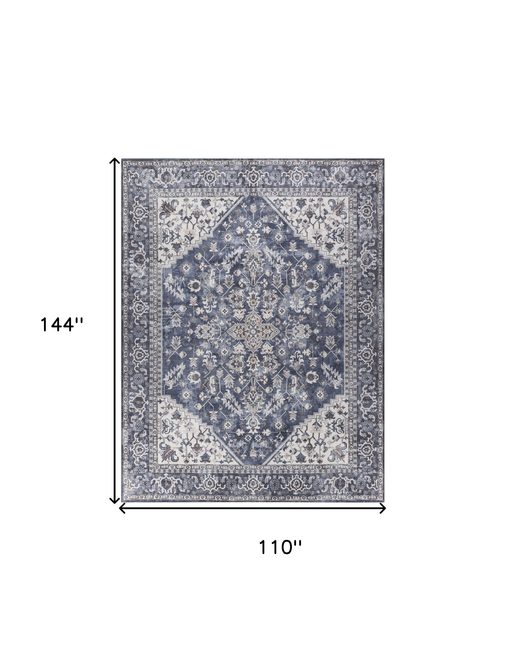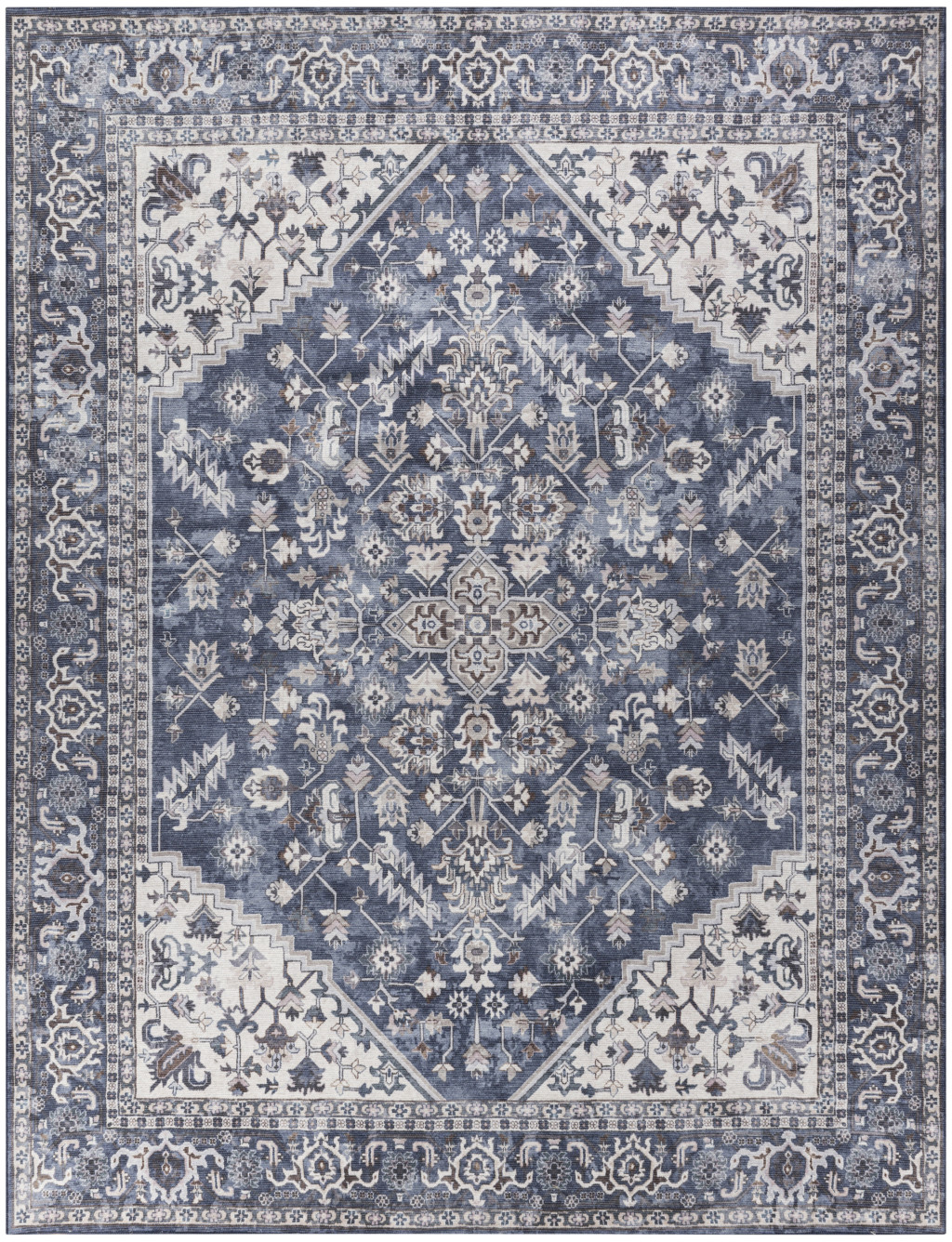 This 9-foot x 12-foot blue and ivory floral power loom distressed washable area rug, is a great way to add warmth to a room. This rectangle shaped rug features a floral design in blue and ivory to give it visual interest. A classic shape marries with good looking design for your space Area Rugs help to give warmth and sense of home to your space. 0.28-inch H x 110.00-inch W x 144.00-inch D