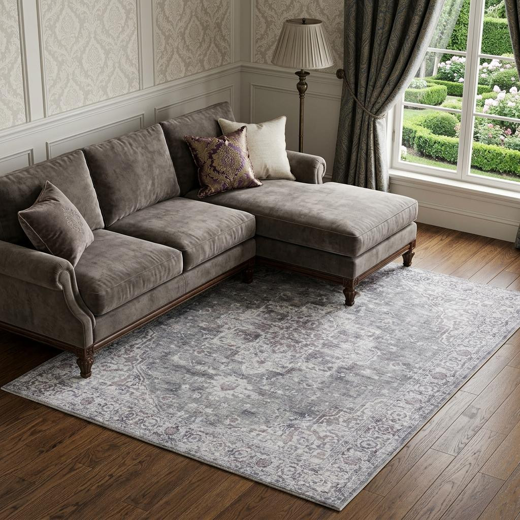 loom distressed washable area rug, distressed washable area rug, washable area rug, gray ivory floral power loom, floral power loom distressed washable |