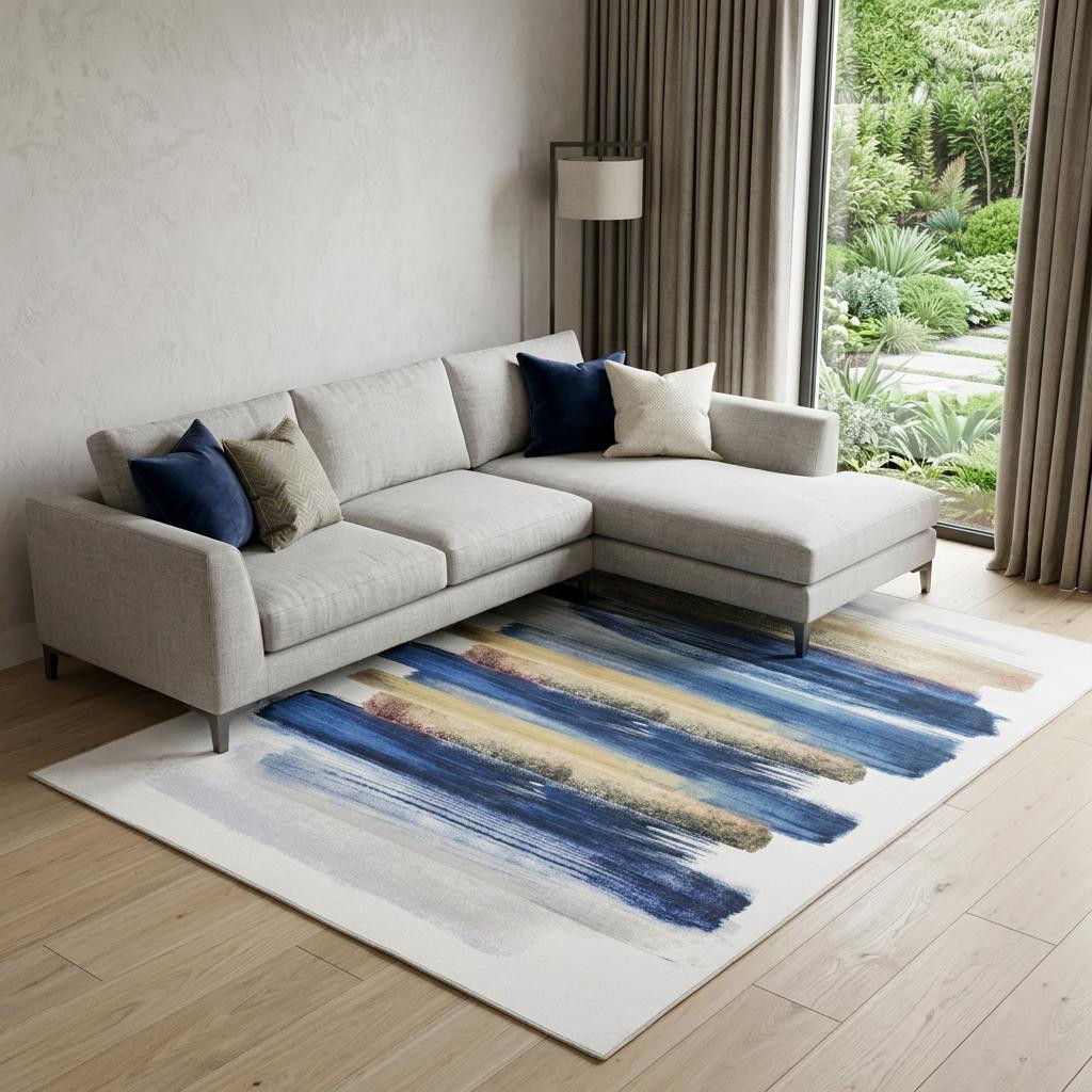 washable non skid area rug, skid area rug, non skid area rug, loom washable non skid area, ivory blue abstract power loom |