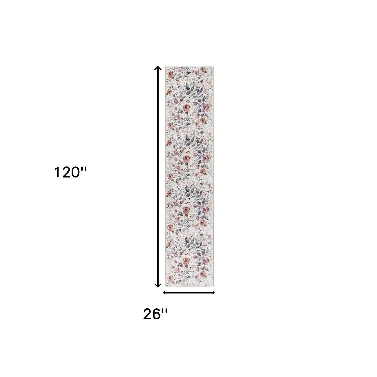 This 10-foot ivory floral washable runner rug, is a great way to add warmth to a room. Rugs are a great way to showcase your style, hide imperfections, warm your home and reduce noise. This rectangular shaped rug features a abstract design that will add a functional and decorative accent to your space. This traditional style runner makes a great accent for the hallway, in front of cabinets, in the laundry room, or any other space you need a narrow and long rug. 26-inch h x 120-inch w x 0.25-inch d.