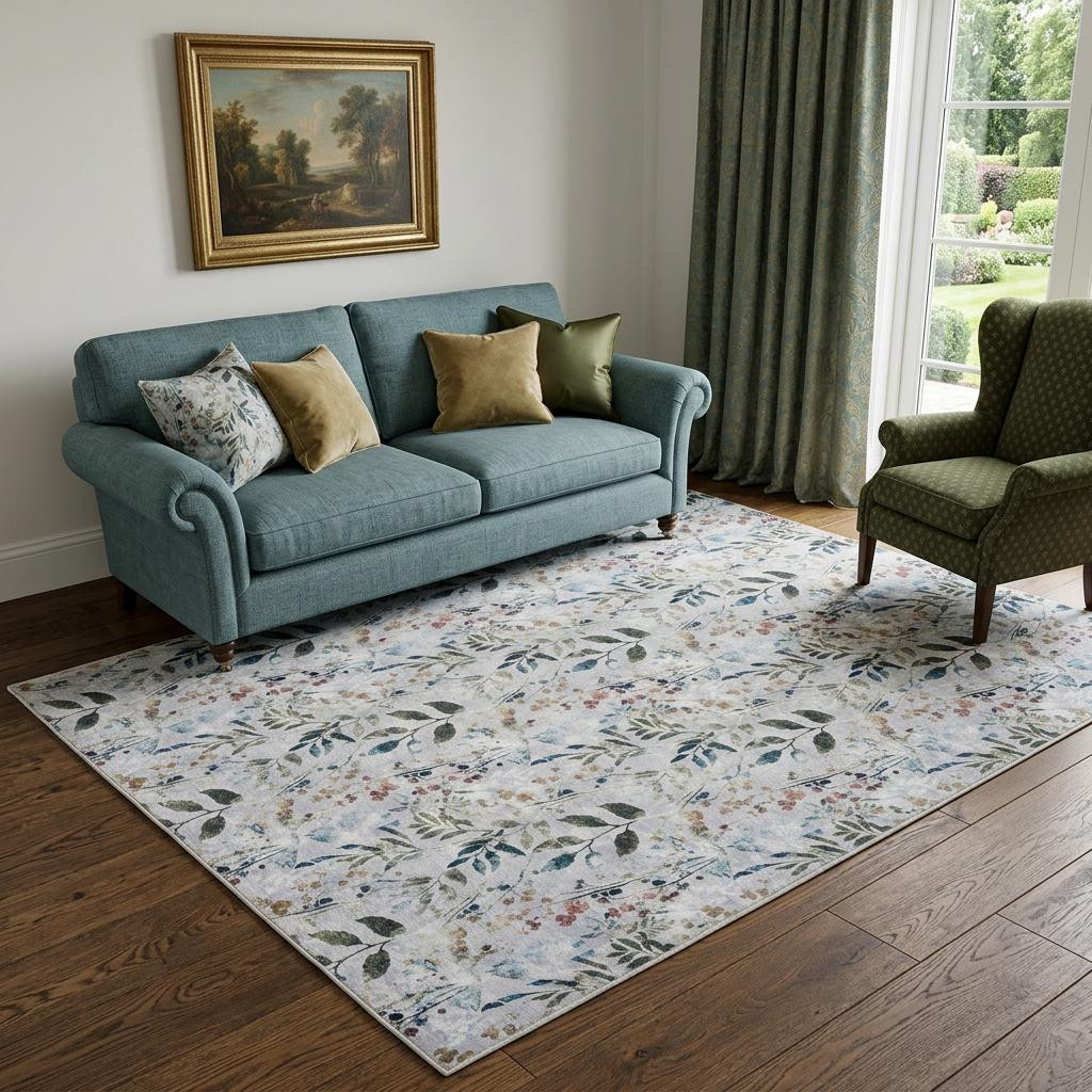 washable non skid area rug, skid area rug, non skid area rug, gray floral power loom washable, ivory blue gray floral power |
