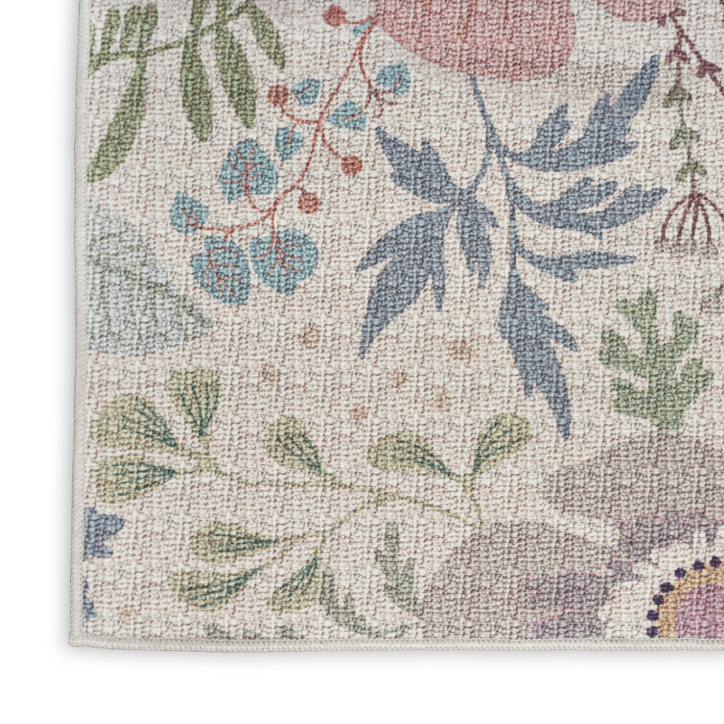 washable non skid area rug, skid area rug, non skid area rug, floral power loom washable, ivory green red floral |