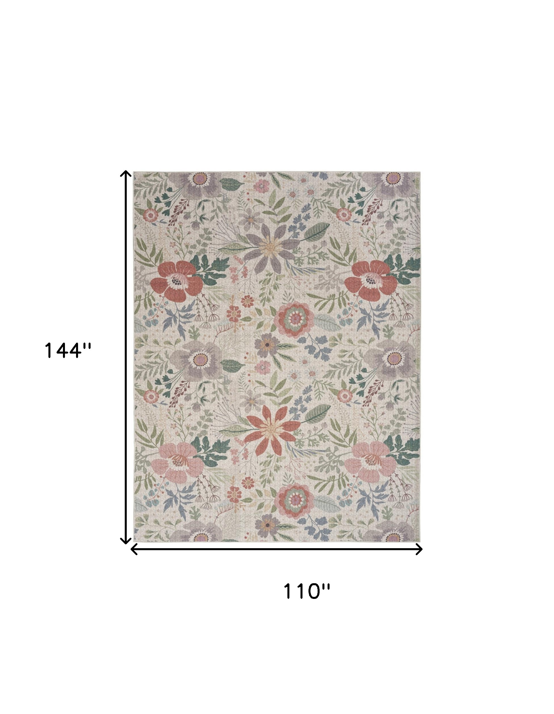 Add some artistry to your room with this 9-foot x 12-foot cream pink and green floral washable area rug. Rugs are a great way to showcase your style, hide imperfections, warm your home and reduce noise. This larger sized, traditional styled rug is ready to create a focal point or statement piece in your room. 110.00-inch h x 144.00-inch w x 0.25-inch d.