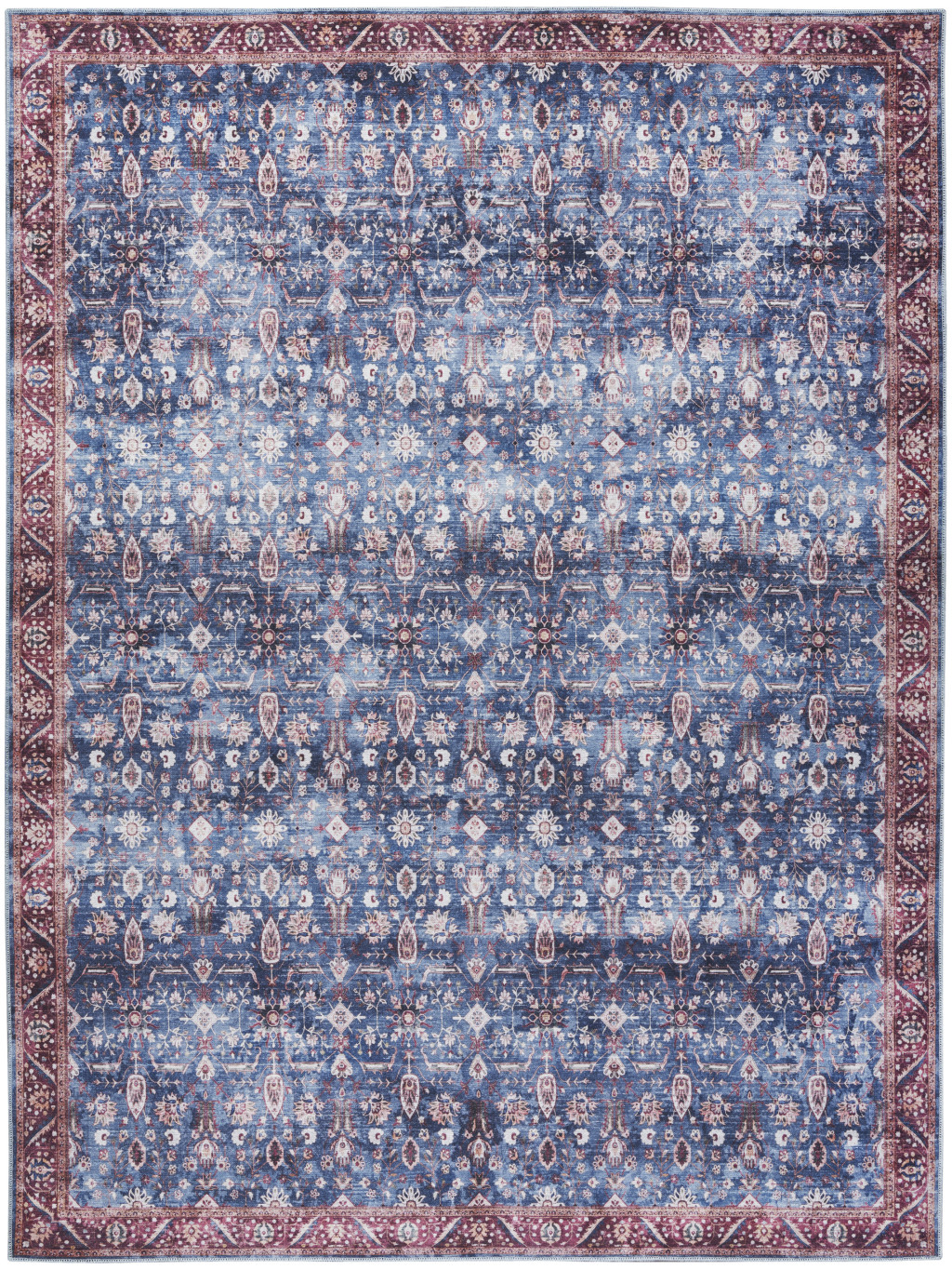 Set an inviting tone in your space with this 5-foot x 7-foot blue and red oriental power loom distressed washable non skid area rug. This rectangle shaped rug features a oriental design in blue and red to give it visual interest. A classic shape marries with good looking design for your space Area Rugs help to give warmth and sense of home to your space. .25-inch H x 63.00-inch W x 87.00-inch D