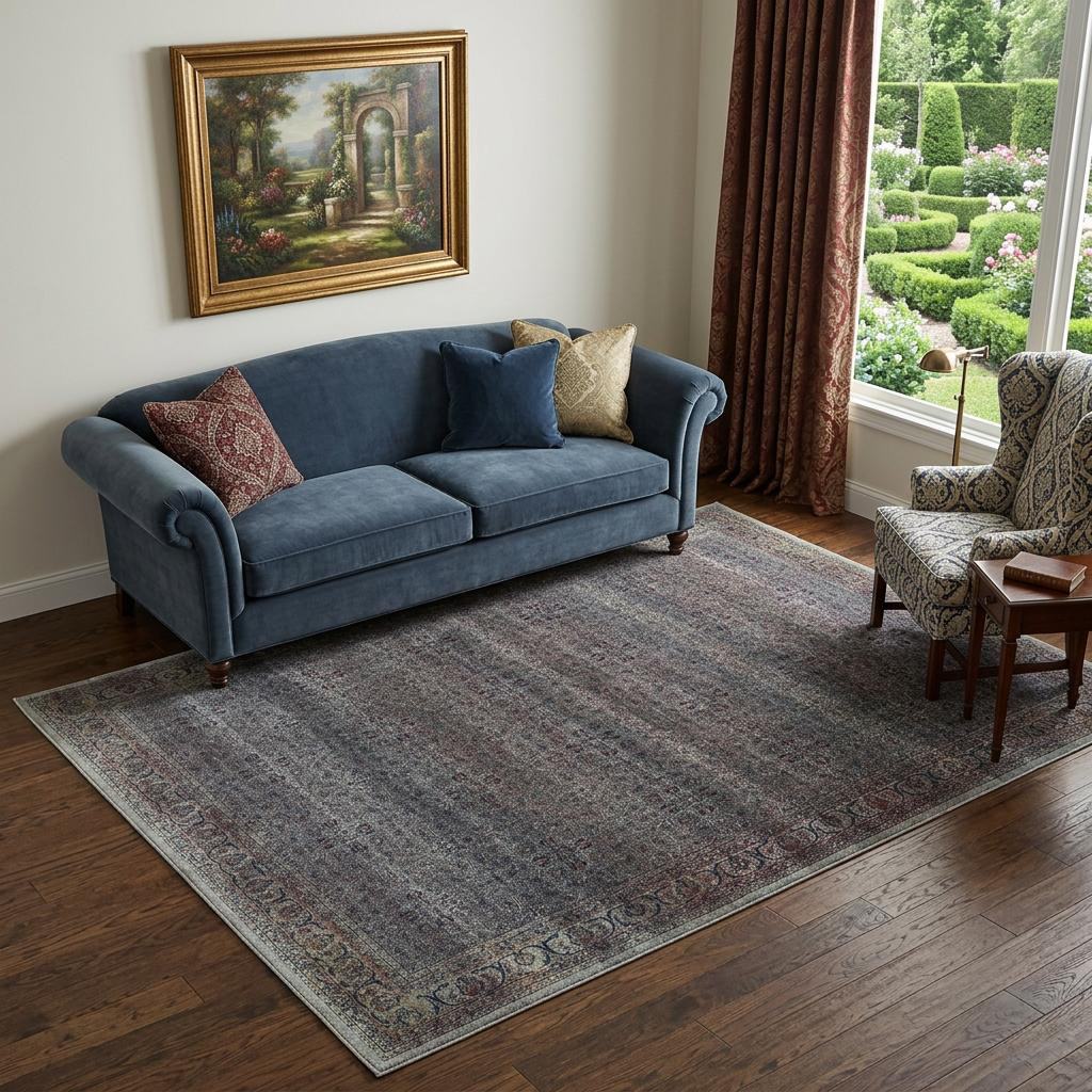 Add great coloration and comfortable texture to your space with this 5-foot x 7-foot blue and brown oriental power loom distressed washable non skid area rug. This rectangle shaped rug features a oriental design in blue and brown to give it visual interest. A classic shape marries with good looking design for your space Area Rugs help to give warmth and sense of home to your space. .25-inch H x 63.00-inch W x 87.00-inch D