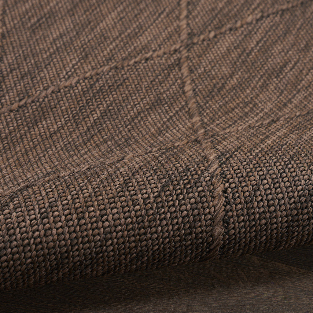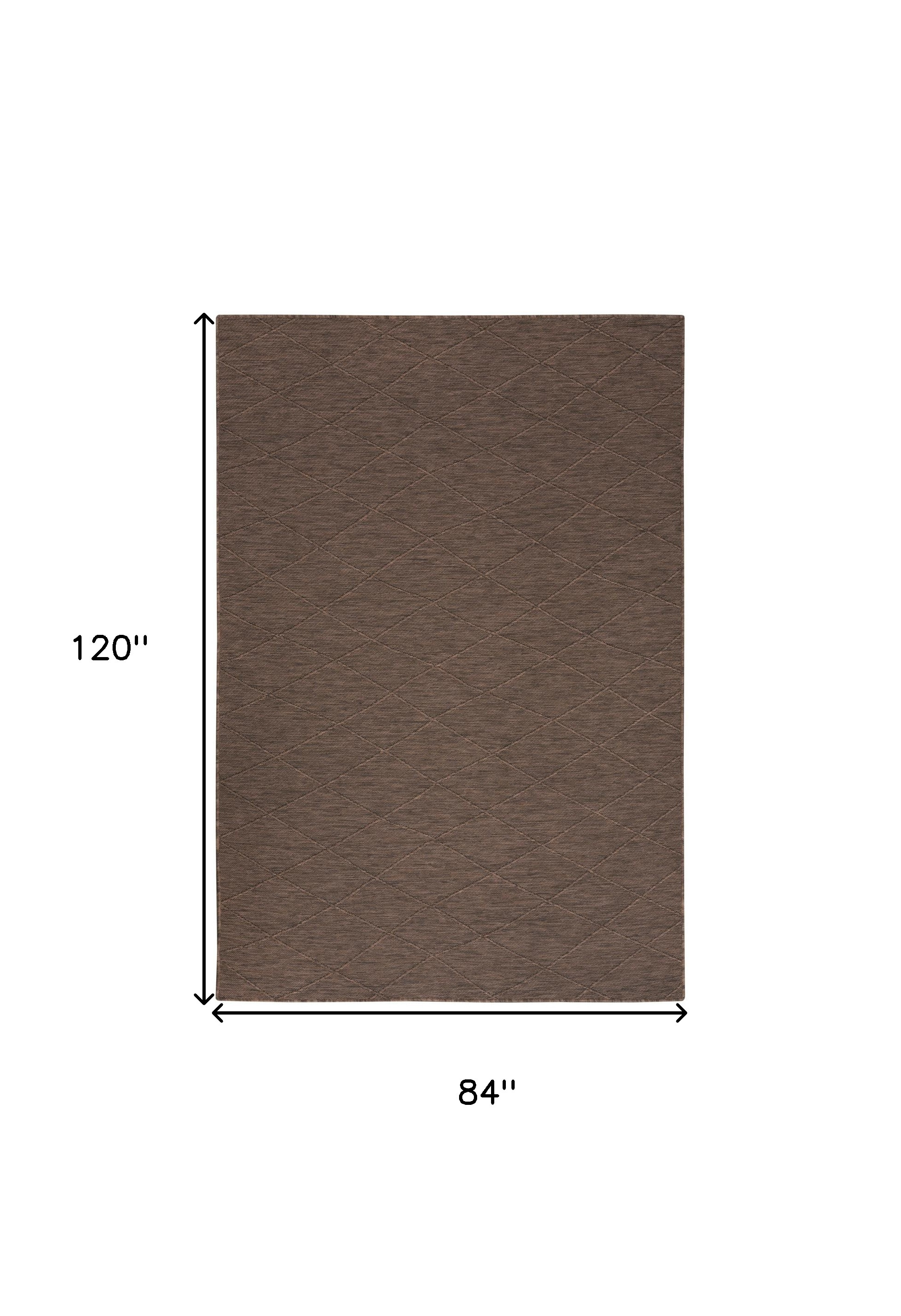 This 7-foot x 10-foot brown geometric non skid indoor outdoor area rug, is a great way to add warmth to a room. This rectangle shaped rug features a geometric design in brown to give it visual interest. A classic shape marries with good looking design for your space area rugs help to give warmth and sense of home to your space. 84-inch H x 120-inch W x 0.28-inch D