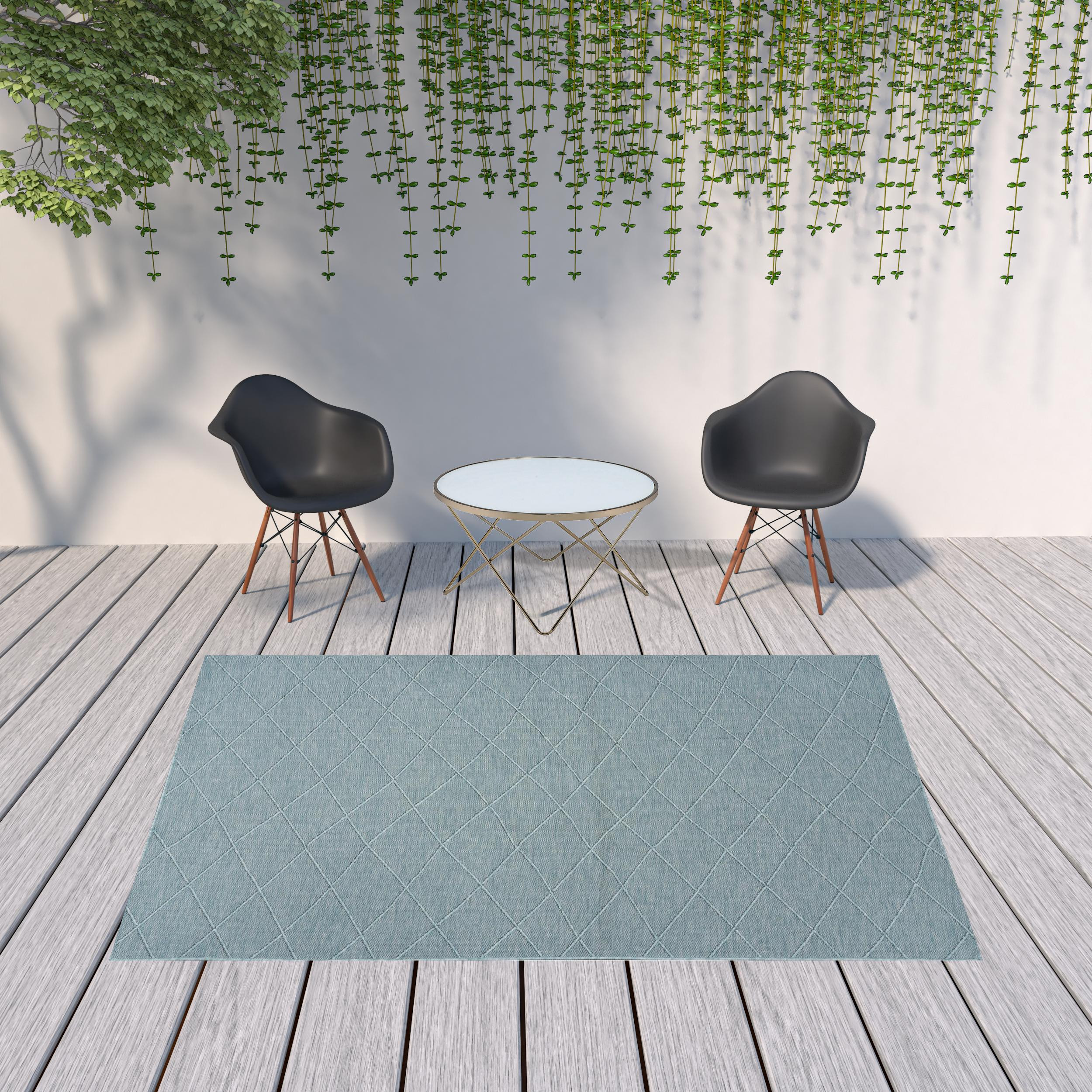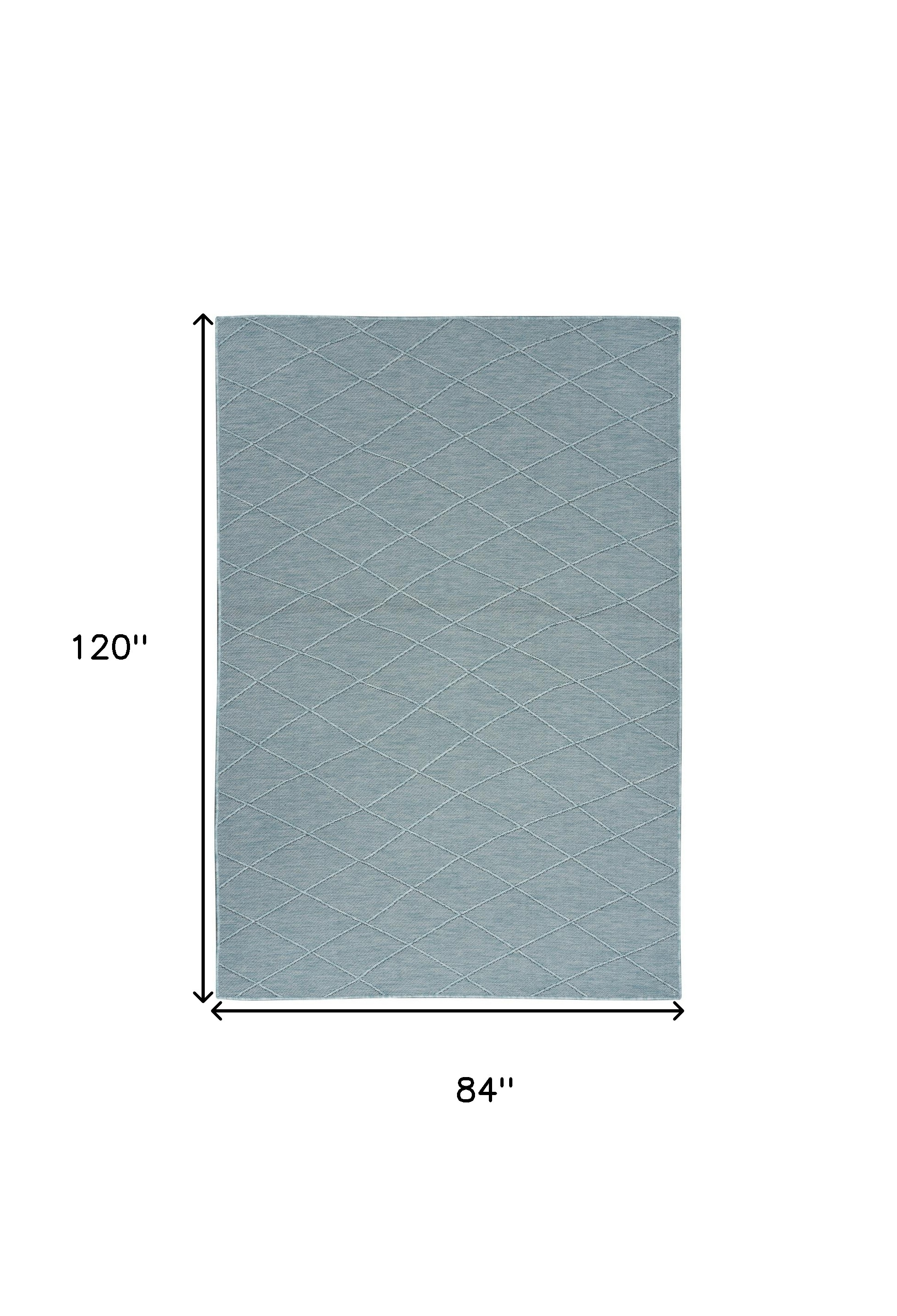 7' X 10' Blue Geometric Non Skid Indoor Outdoor Area Rug