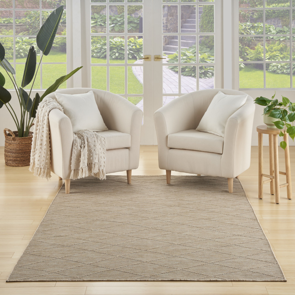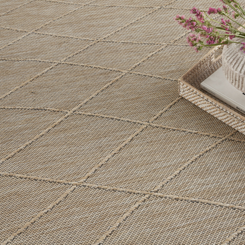 Add some artistry to your room with this 7-foot x 10-foot tan geometric non skid indoor outdoor area rug. This rectangle shaped rug features a geometric design in tan to give it visual interest. A classic shape marries with good looking design for your space the coloring of this rug adds a delightfully neutral tone to your home and will easily match with most any decor. Place this area rug against a hardwood or tile floor and it will enliven your living space with style and sophistication. 84-inch H x 120-inch W x 0.28-inch D