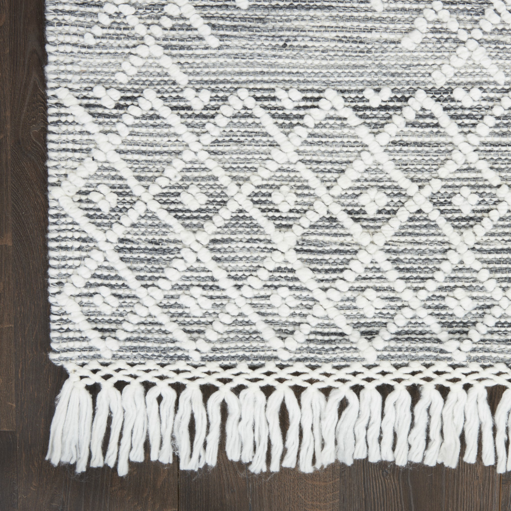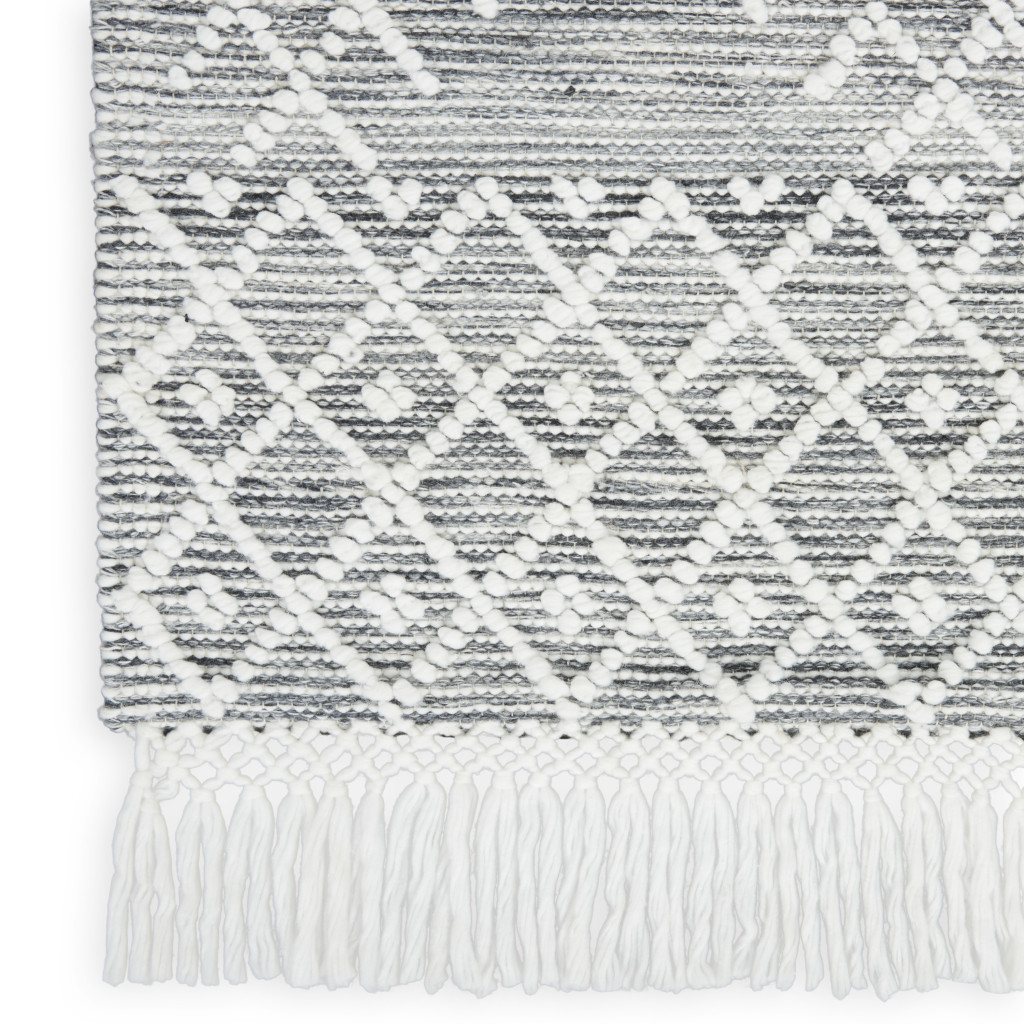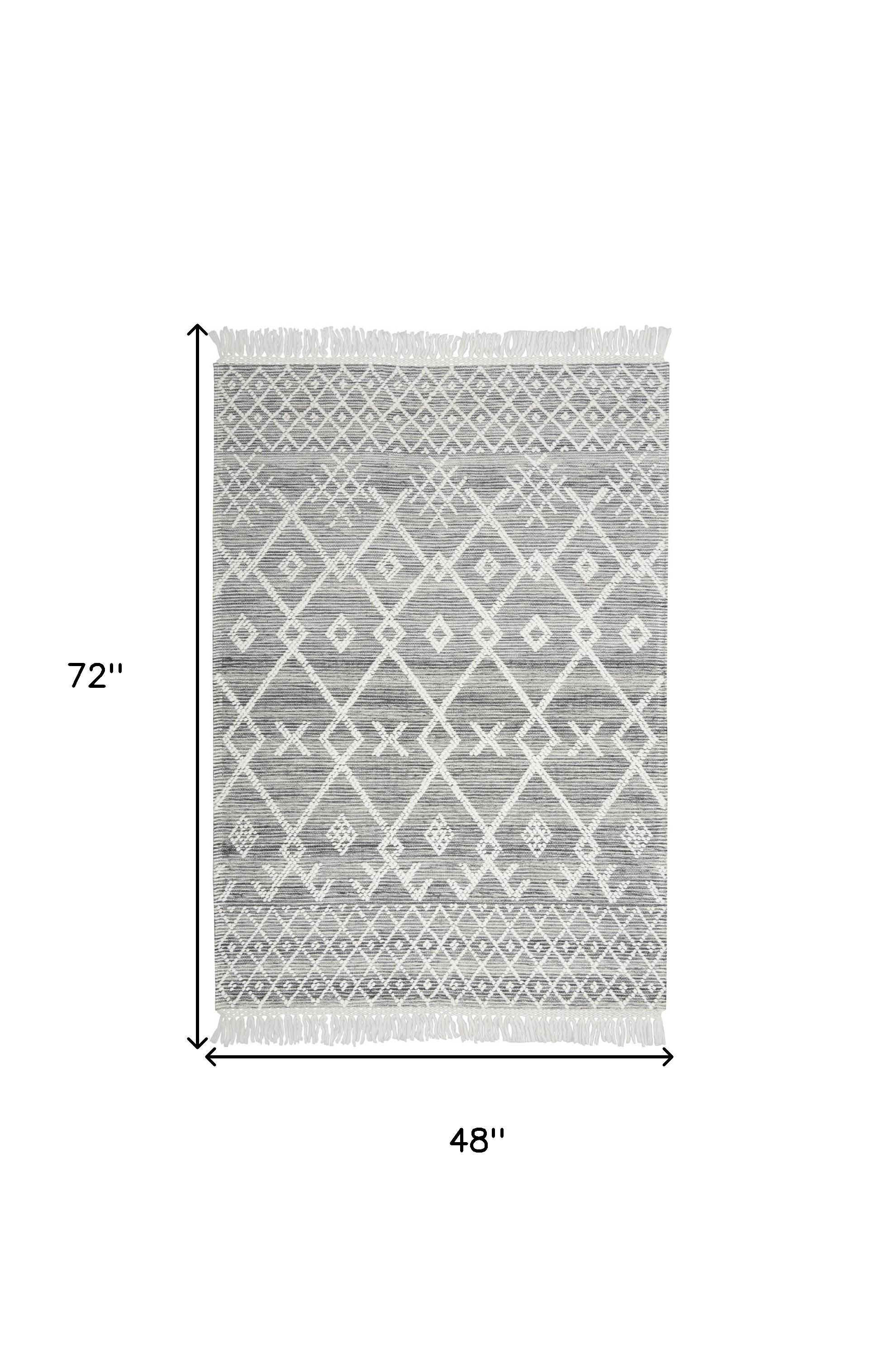 Add great coloration and comfortable texture to your space with this 4-foot x 6-foot gray and ivory geometric hand woven area rug with fringe. This rectangle shaped rug features a geometric design in gray and ivory to give it visual interest. A classic shape marries with good looking design for your space Tassel ends bring a timeless and fashionable look to your interior. Crafted by skilled artisans, this hand woven rug is genuine and unique. No two will be exactly alike. Place this area rug against a hardwood or tile floor and it will enliven your living space with style and sophistication. .50-inch H x 48.00-inch W x 72.00-inch D