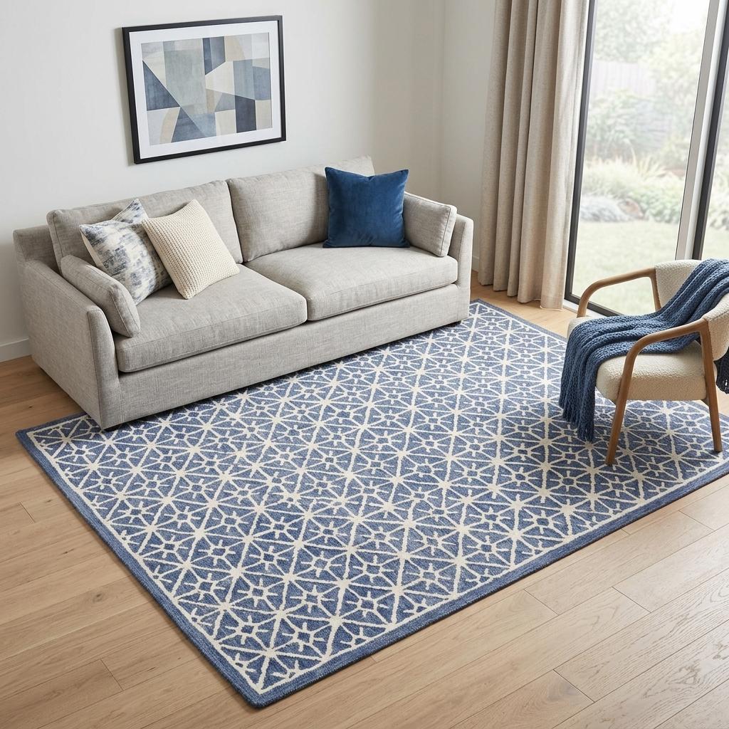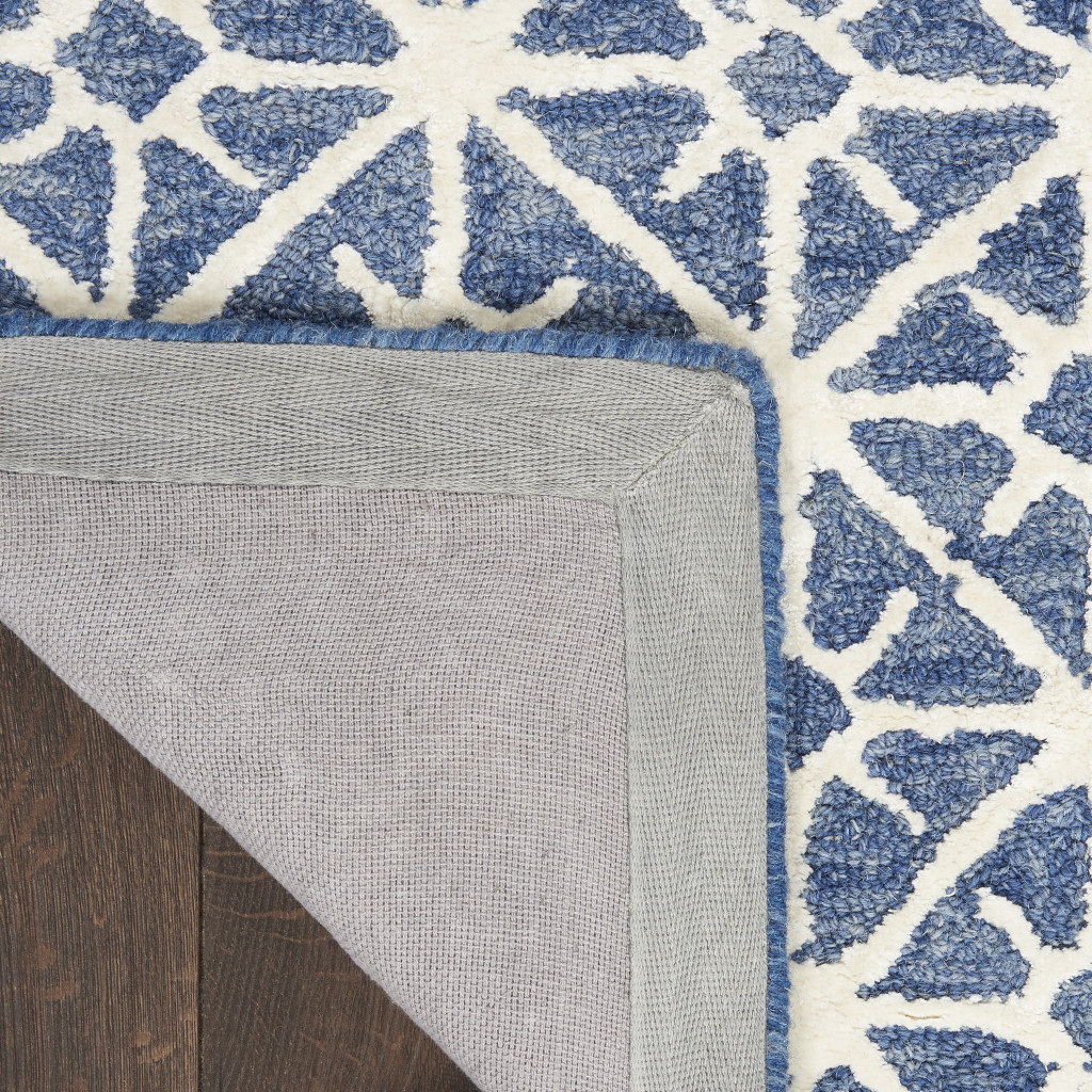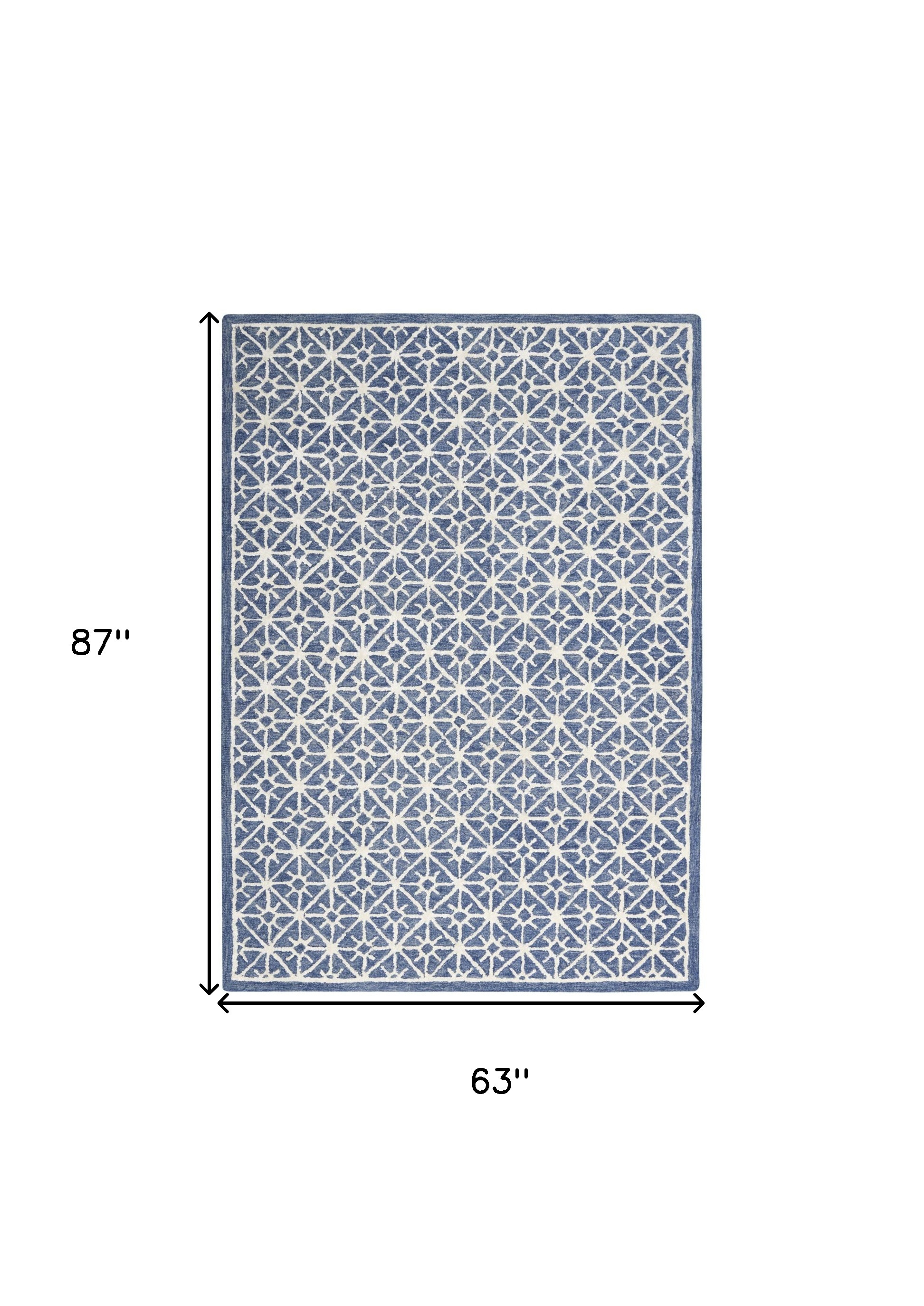 Set an inviting tone in your space with this 5-foot x 7-foot blue and off white geometric hand tufted area rug. This rectangle shaped rug features a geometric design in blue and off white to give it visual interest. A classic shape marries with good looking design for your space Area Rugs help to give warmth and sense of home to your space. .50-inch H x 63.00-inch W x 87.00-inch D