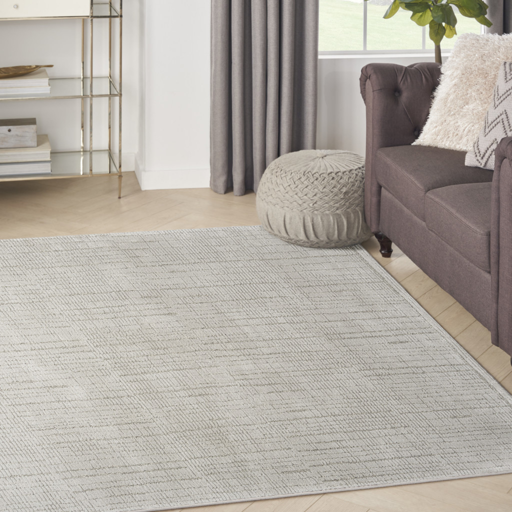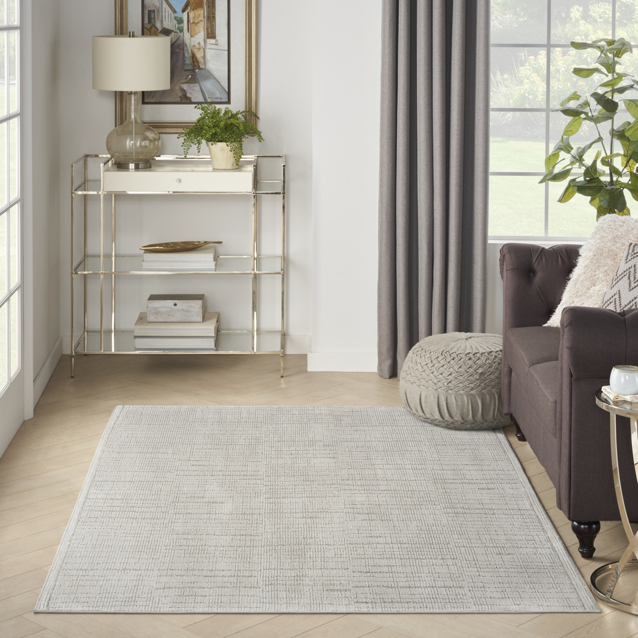 Add some artistry to your room with this 4-foot x 6-foot gray and silver abstract area rug. Built to last, this rug crafted from polypropylene and polyester fibers is known for its durability and long lasting appeal. Rugs are a great way to showcase your style, hide imperfections, warm your home and reduce noise. This smaller sized, scandinavian styled rug is just what you need for your walkway, bedside, in front of door, cabinet, refrigerator, or chair. 47.00-inch h x 71.00-inch w x 0.59-inch d.