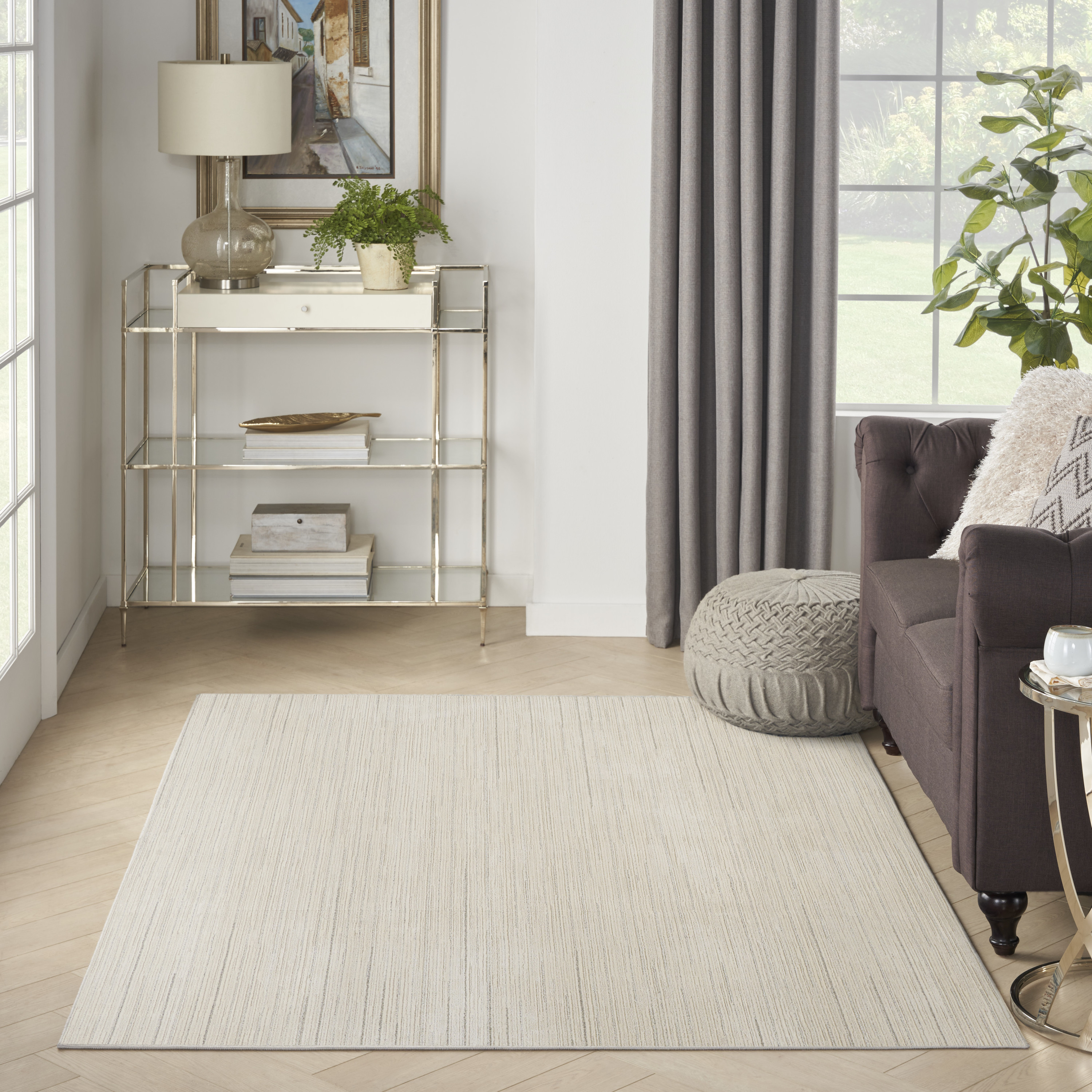Add some artistry to your room with this 5-foot x 7-foot gray and ivory abstract area rug. Built to last, this rug crafted from polypropylene and polyester fibers is known for its durability and long lasting appeal. Rugs are a great way to showcase your style, hide imperfections, warm your home and reduce noise. This larger sized, scandinavian styled rug is ready to create a focal point or statement piece in your room. 63-inch h x 87-inch w x 0.59-inch d.