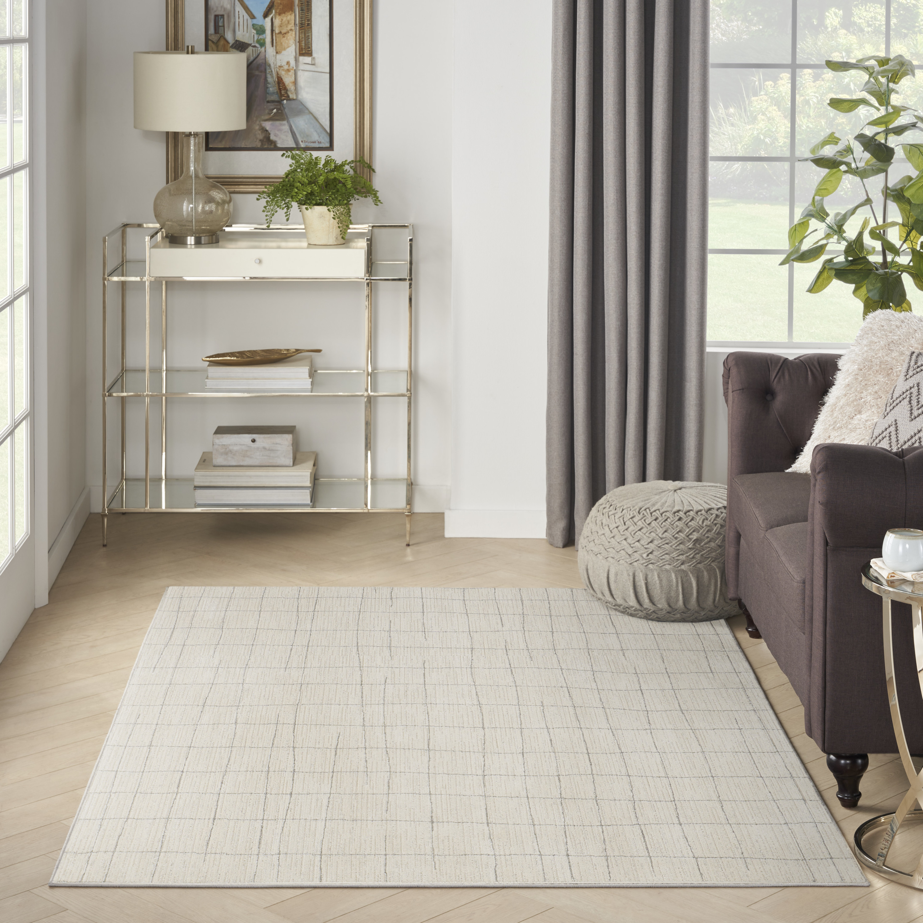 Add great coloration and comfortable texture to your space with this 6-foot x 9-foot gray and ivory abstract area rug. Built to last, this rug crafted from polypropylene and polyester fibers is known for its durability and long lasting appeal. Rugs are a great way to showcase your style, hide imperfections, warm your home and reduce noise. This larger sized, scandinavian styled rug is ready to create a focal point or statement piece in your room. 72-inch h x 108-inch w x 0.59-inch d.