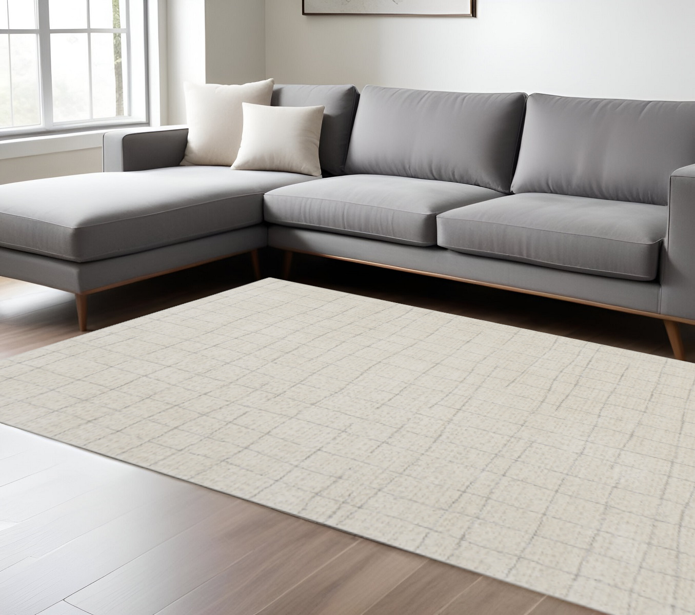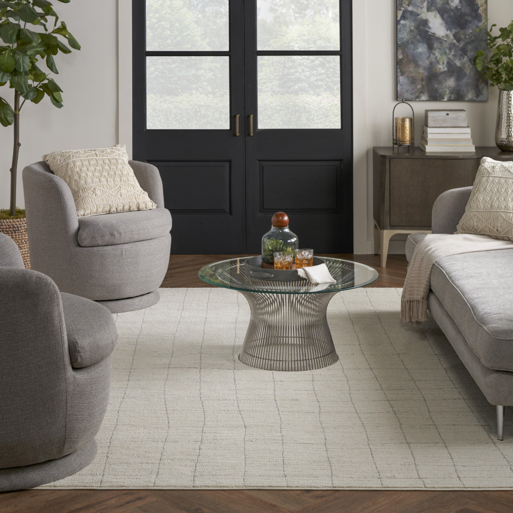 Add some artistry to your room with this 8-foot x 10-foot gray and ivory abstract area rug. Built to last, this rug crafted from polypropylene and polyester fibers is known for its durability and long lasting appeal. Rugs are a great way to showcase your style, hide imperfections, warm your home and reduce noise. This larger sized, scandinavian styled rug is ready to create a focal point or statement piece in your room. 94-inch h x 118-inch w x 0.59-inch d.