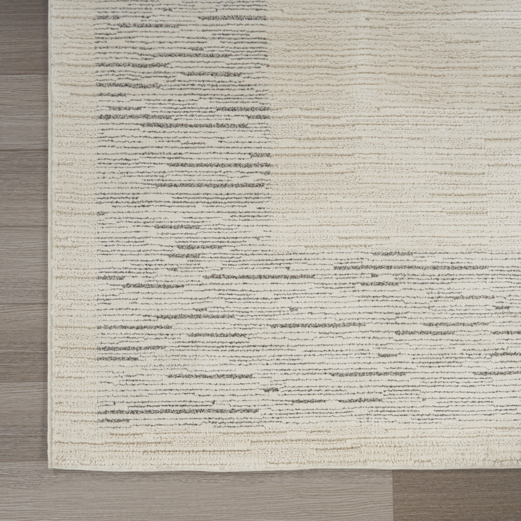 This 8-foot x 10-foot ivory and gray abstract power loom area rug, is a great way to add warmth to a room. This rectangle shaped rug features a abstract design in ivory and gray to give it visual interest. A classic shape marries with good looking design for your space place this area rug against a hardwood or tile floor and it will enliven your living space with style and sophistication. 94-inch H x 118-inch W x 0.59-inch D