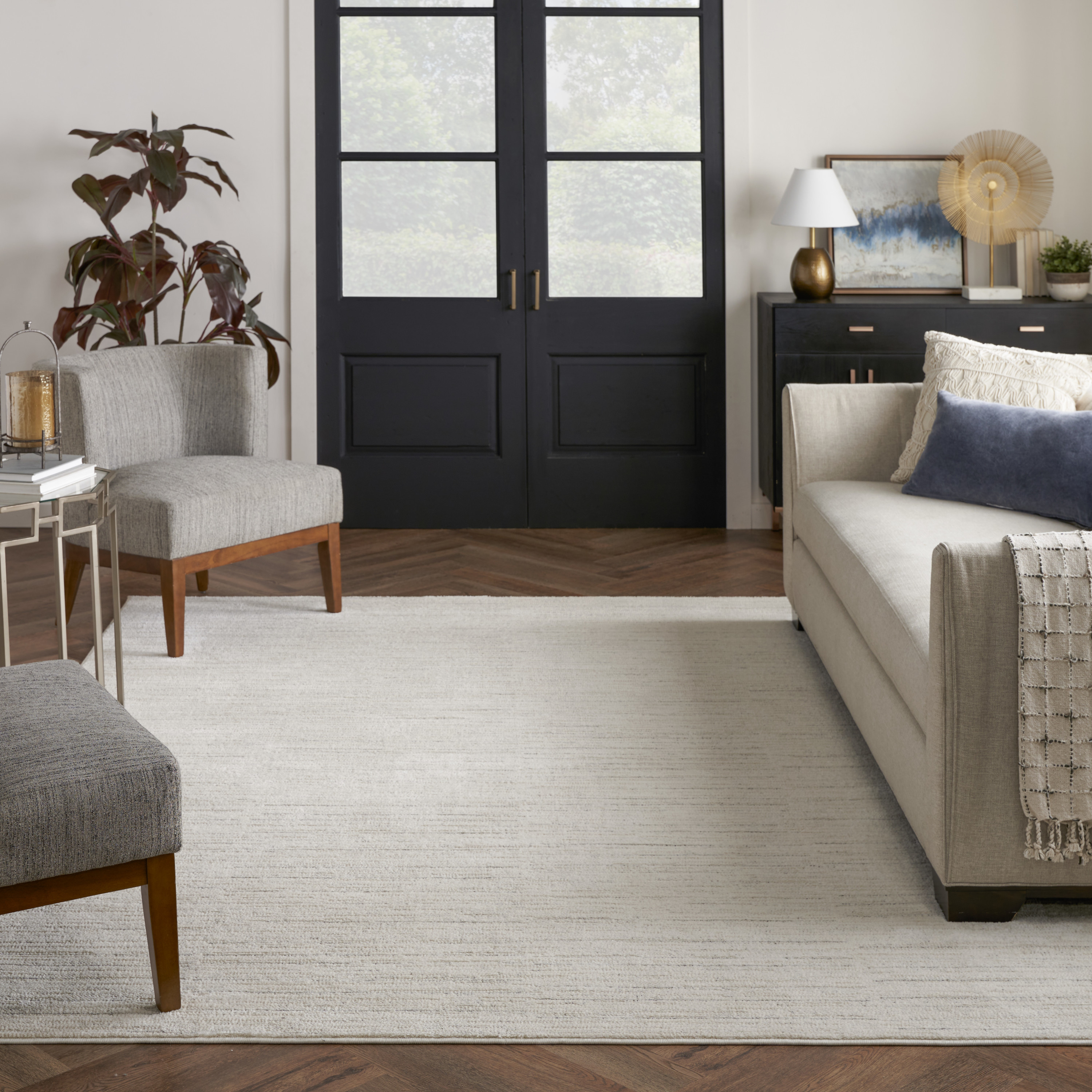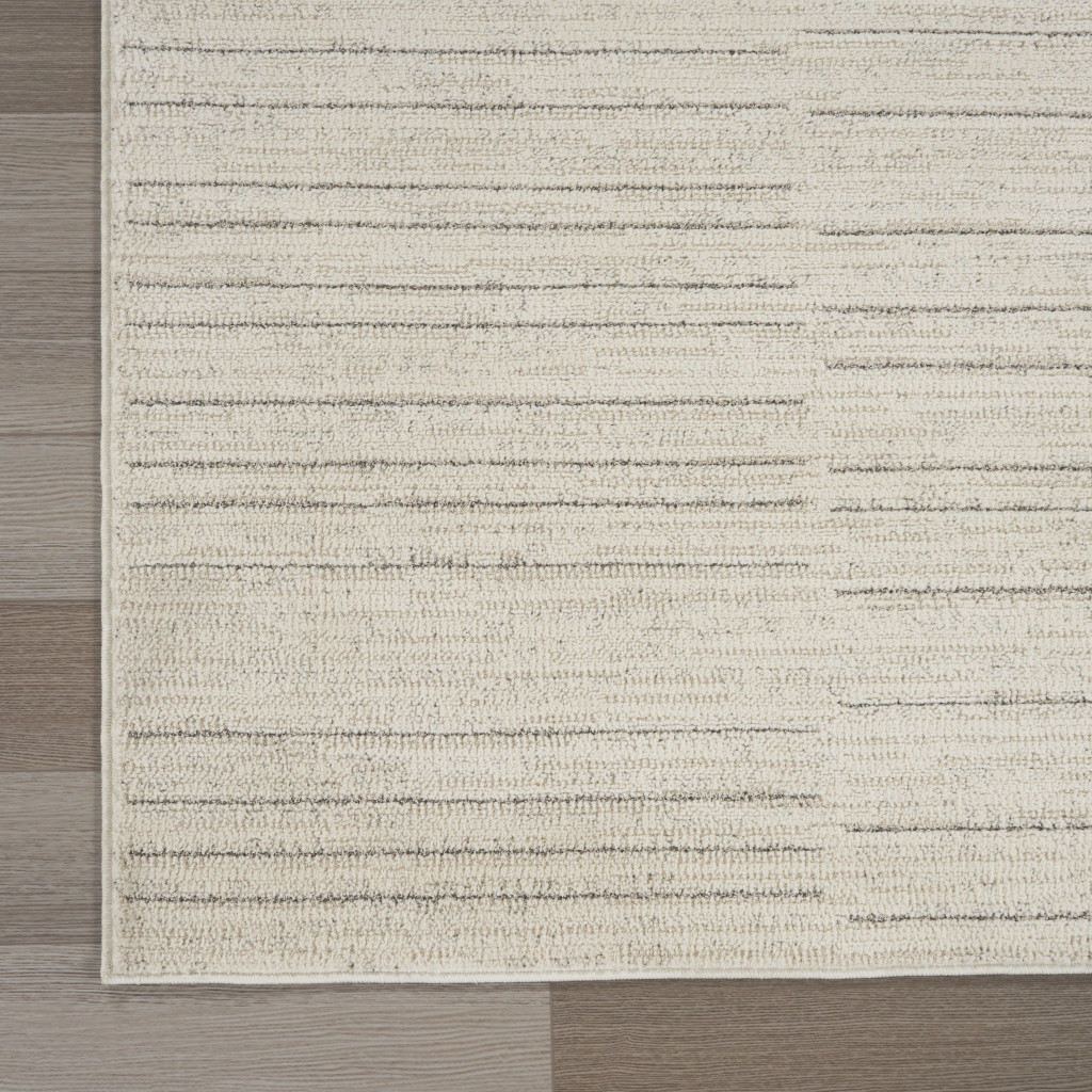 Set an inviting tone in your space with this 8-foot x 10-foot gray and ivory abstract area rug. Built to last, this rug crafted from polypropylene and polyester fibers is known for its durability and long lasting appeal. Rugs are a great way to showcase your style, hide imperfections, warm your home and reduce noise. This larger sized, scandinavian styled rug is ready to create a focal point or statement piece in your room. 94-inch h x 118-inch w x 0.59-inch d.