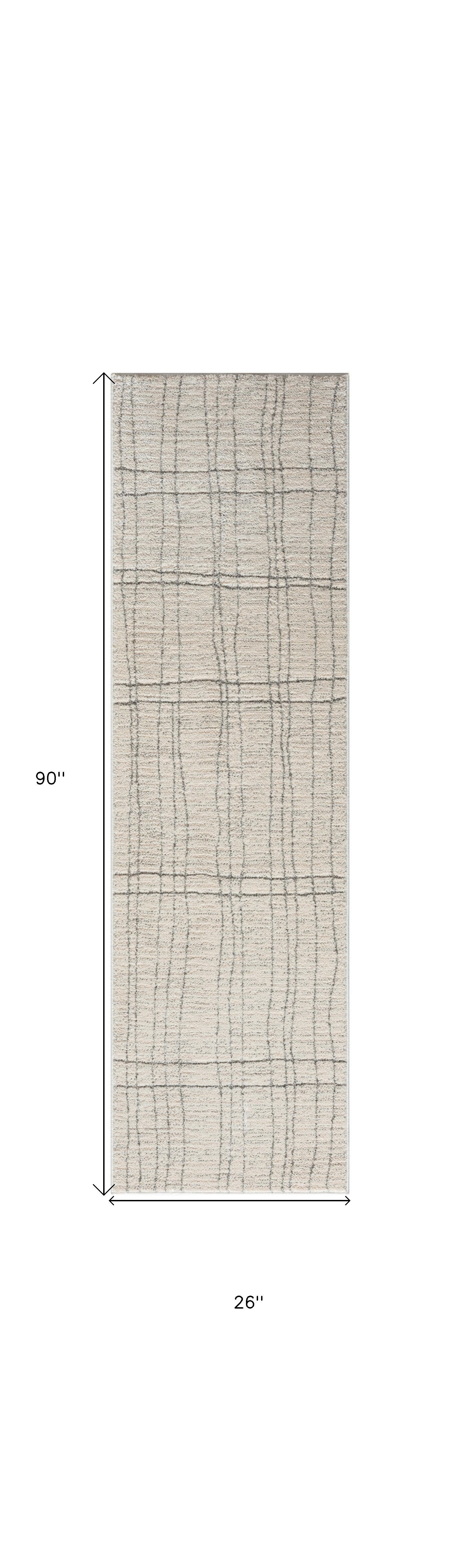 Set an inviting tone in your space with this 8-foot gray and ivory abstract runner rug. Built to last, this rug crafted from polypropylene and polyester fibers is known for its durability and long lasting appeal. Rugs are a great way to showcase your style, hide imperfections, warm your home and reduce noise. This rectangular shaped rug features a abstract design that will add a functional and decorative accent to your space. This modern style runner makes a great accent for the hallway, in front of cabinets, in the laundry room, or any other space you need a narrow and long rug. 26-inch h x 90-inch w x 0.59-inch d.