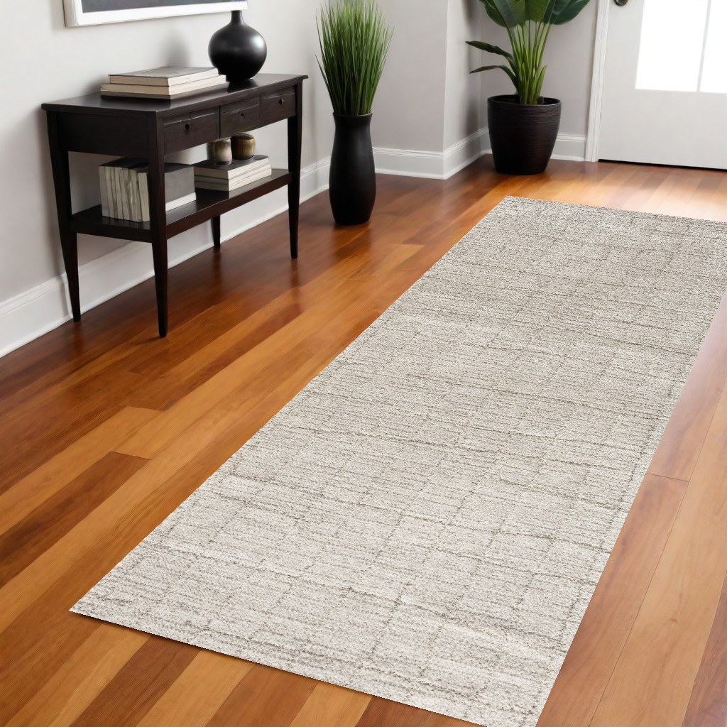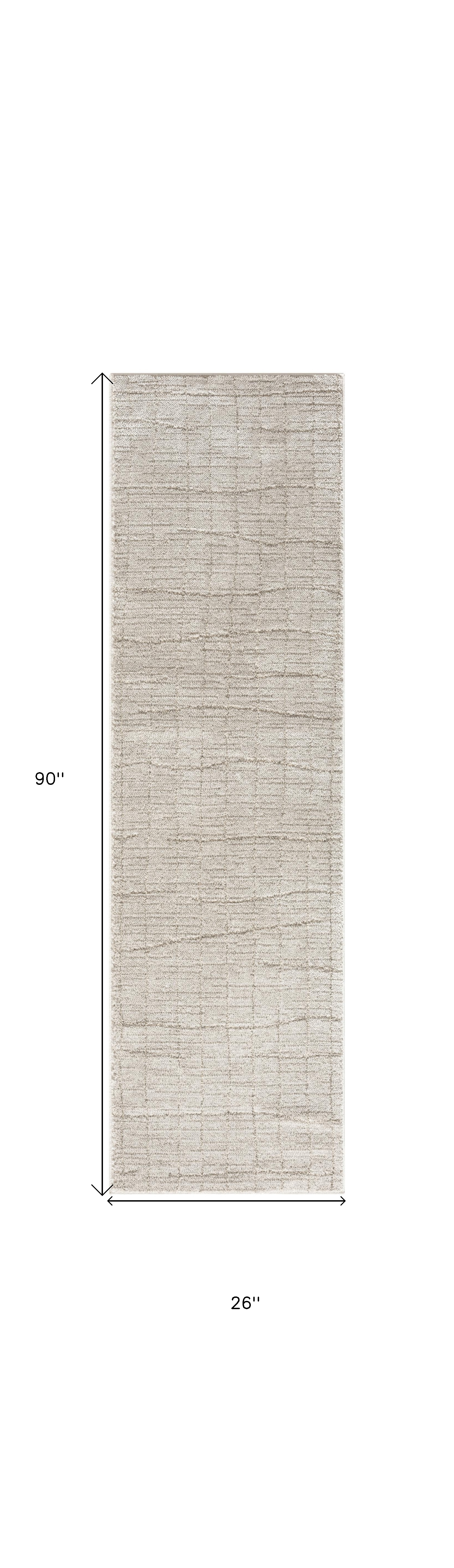 Add some artistry to your room with this 8-foot beige and gray abstract runner rug. Built to last, this rug crafted from polypropylene and polyester fibers is known for its durability and long lasting appeal. Rugs are a great way to showcase your style, hide imperfections, warm your home and reduce noise. This rectangular shaped rug features a abstract design that will add a functional and decorative accent to your space. This modern style runner makes a great accent for the hallway, in front of cabinets, in the laundry room, or any other space you need a narrow and long rug. 26-inch h x 90-inch w x 0.59-inch d.