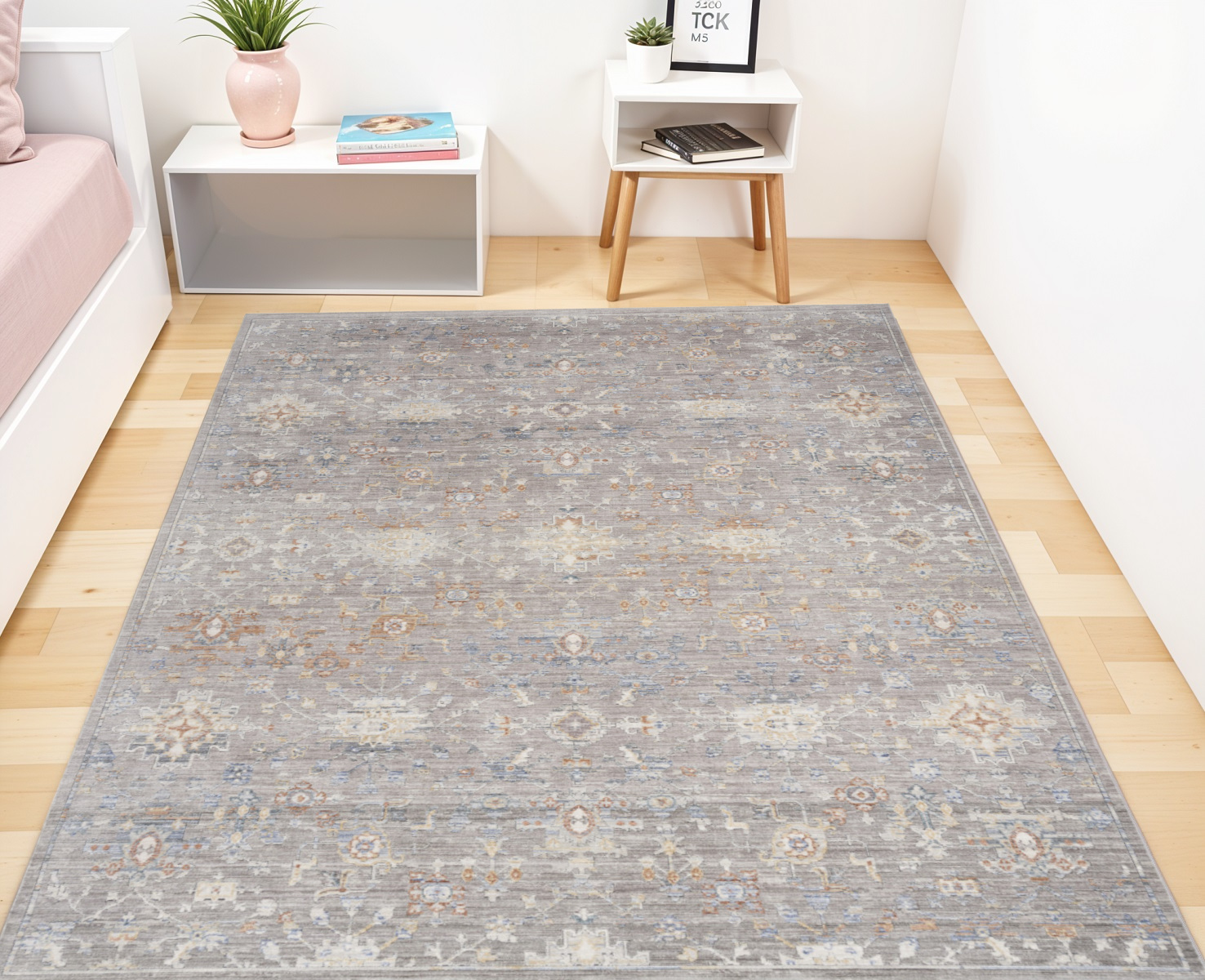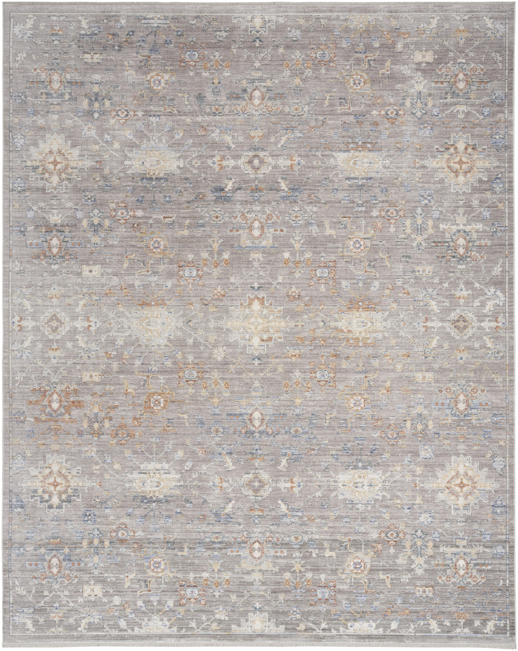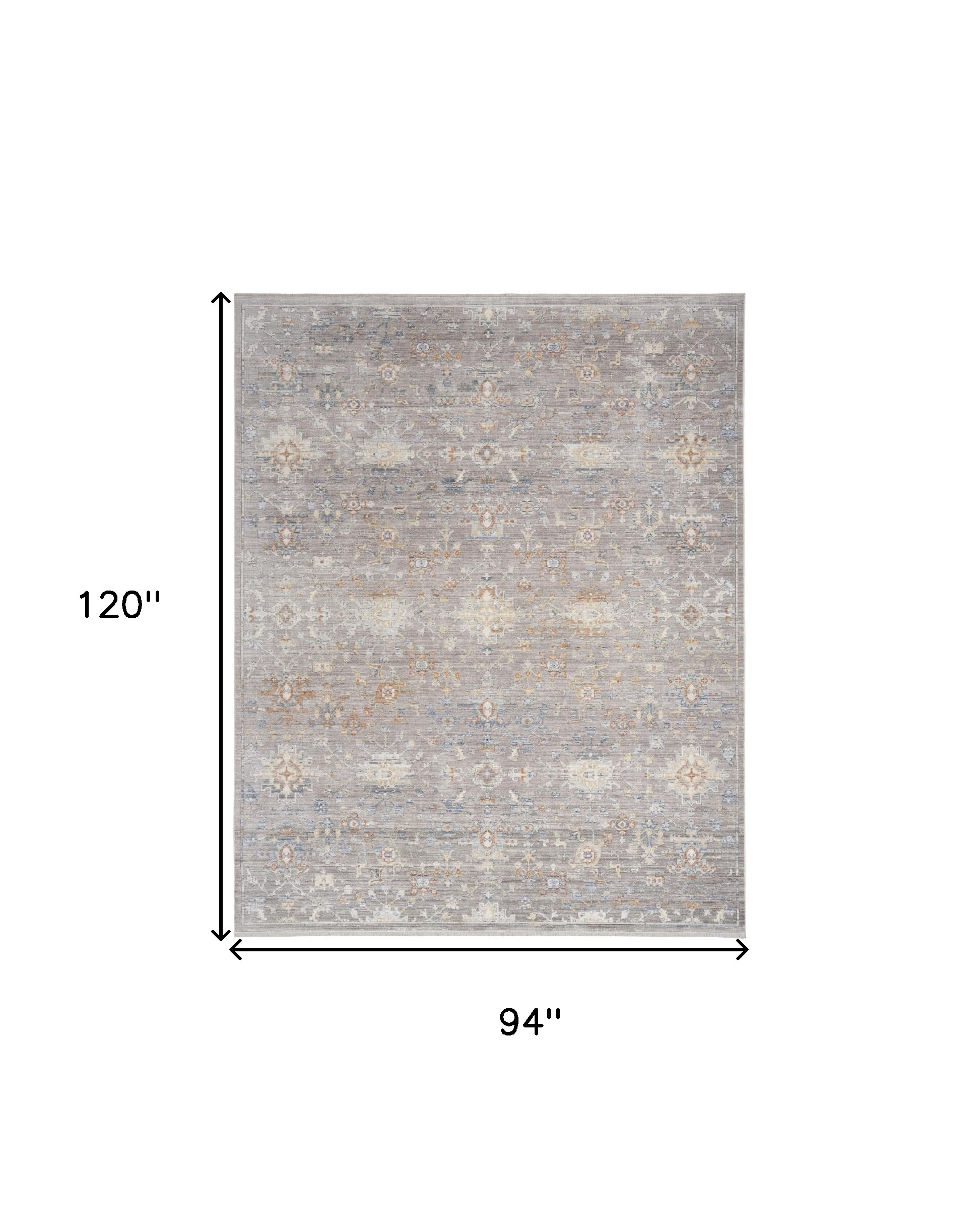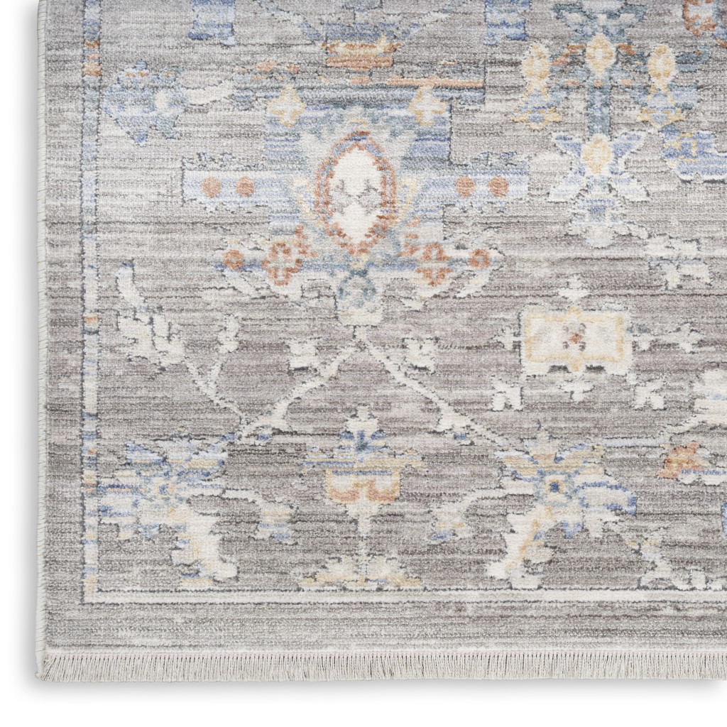 Add some artistry to your room with this 8-foot x 10-foot ivory blue and gray oriental power loom distressed area rug with fringe. This rectangle shaped rug features a oriental design in ivory blue and gray to give it visual interest. A classic shape marries with good looking design for your space Tassel ends bring a timeless and fashionable look to your interior. Area Rugs help to give warmth and sense of home to your space. .25-inch H x 94.00-inch W x 120.00-inch D