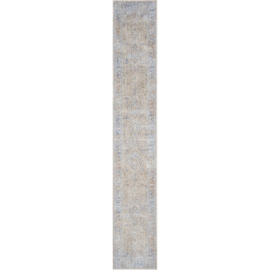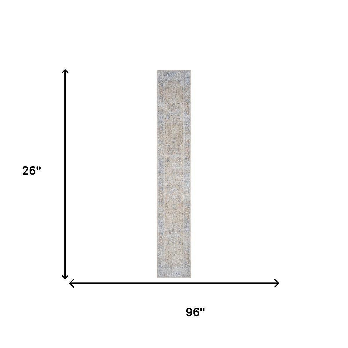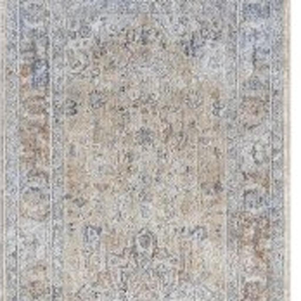 Set an inviting tone in your space with this 8-foot gray and gold oriental power loom distressed runner rug with fringe. This runner shaped rug features a oriental design in gray and gold to give it visual interest. A classic shape marries with good looking design for your space Tassel ends bring a timeless and fashionable look to your interior. Area Rugs help to give warmth and sense of home to your space. .25-inch H x 26.00-inch W x 96.00-inch D
