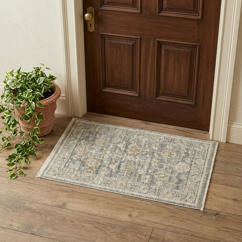 Add great coloration and comfortable texture to your space with this 3-foot x 5-foot beige ivory and gray oriental power loom distressed area rug with fringe. This rectangle shaped rug features a oriental design in beige ivory and gray to give it visual interest. A classic shape marries with good looking design for your space Tassel ends bring a timeless and fashionable look to your interior. Place this area rug against a hardwood or tile floor and it will enliven your living space with style and sophistication. .39-inch H x 30.00-inch W x 54.00-inch D