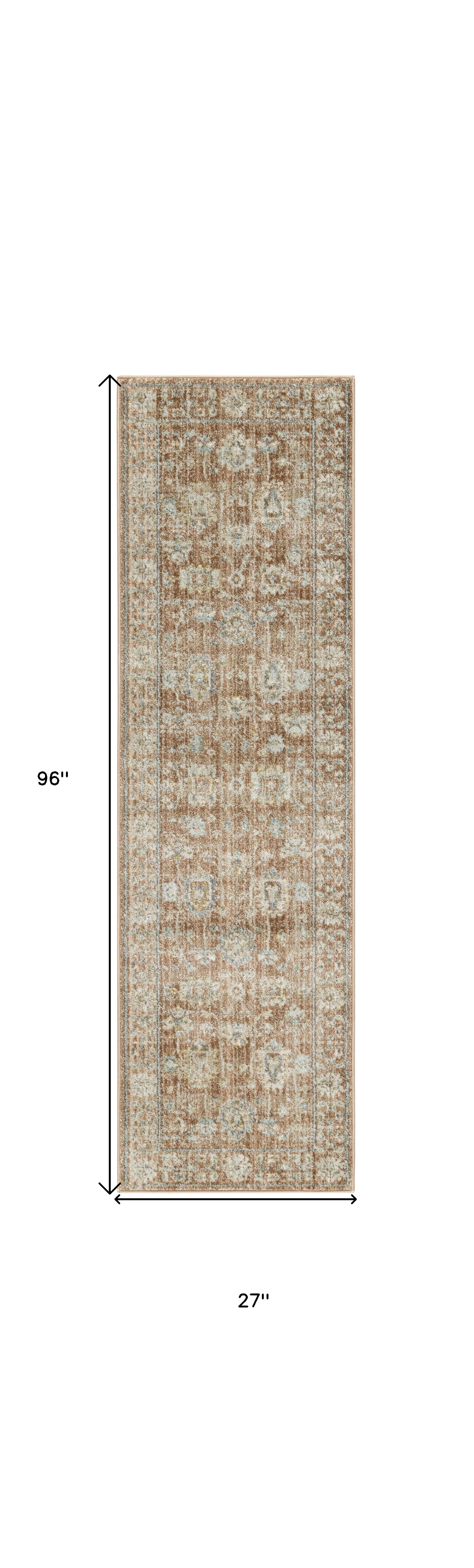 This 8-foot orange and ivory oriental distressed runner rug with fringe, is a great way to add warmth to a room. Built to last, this rug crafted from polypropylene fibers is known for its durability and long lasting appeal. Rugs are a great way to showcase your style, hide imperfections, warm your home and reduce noise. This rectangular shaped rug features a abstract design that will add a functional and decorative accent to your space. Tassel ends bring a timeless and fashionable look to your interior. This traditional style runner makes a great accent for the hallway, in front of cabinets, in the laundry room, or any other space you need a narrow and long rug. 27-inch h x 96-inch w x 0.39-inch d.