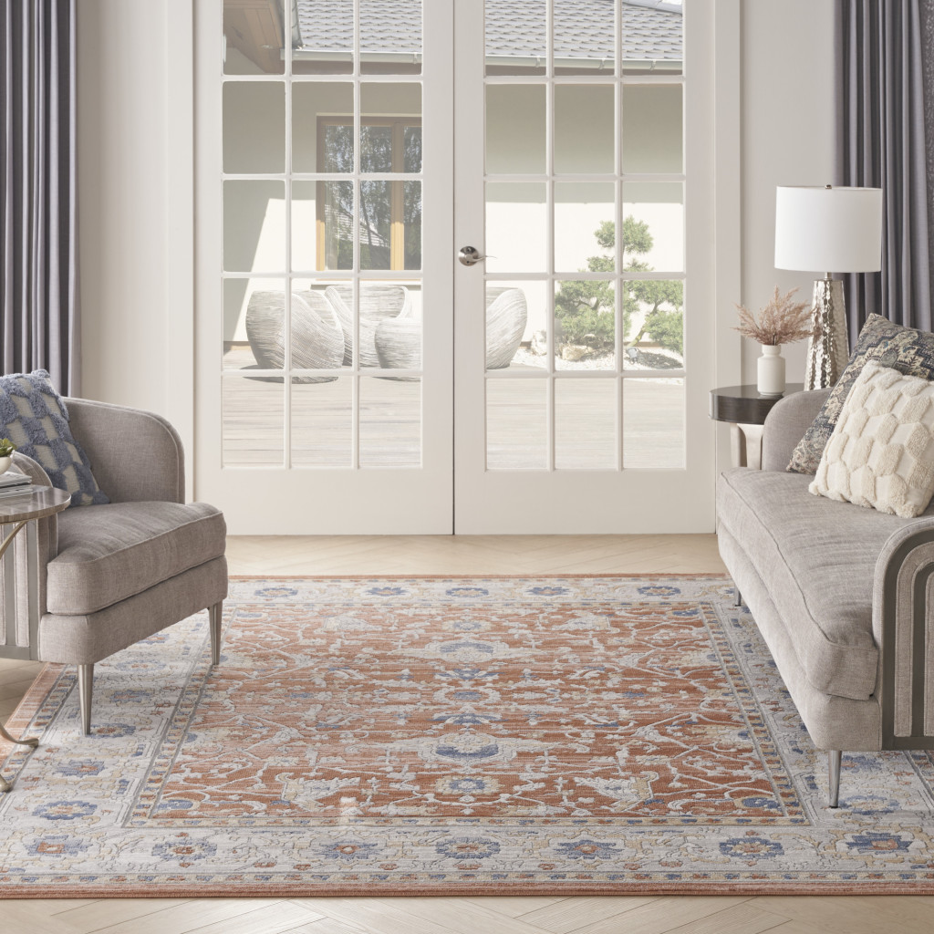 Add great coloration and comfortable texture to your space with this 8-foot x 10-foot gray and red oriental power loom area rug. This rectangle shaped rug features a oriental design in gray and red to give it visual interest. A classic shape marries with good looking design for your space area rugs help to give warmth and sense of home to your space. 94-inch H x 118-inch W x 0.5-inch D