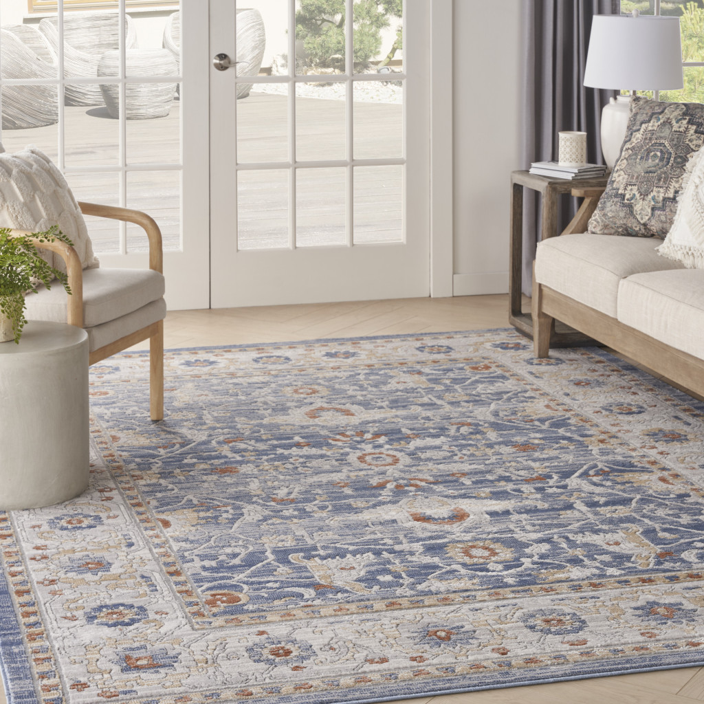 Add some artistry to your room with this 8-foot x 10-foot blue and gray oriental power loom area rug. This rectangle shaped rug features a oriental design in blue and gray to give it visual interest. A classic shape marries with good looking design for your space place this area rug against a hardwood or tile floor and it will enliven your living space with style and sophistication. 94-inch H x 118-inch W x 0.5-inch D