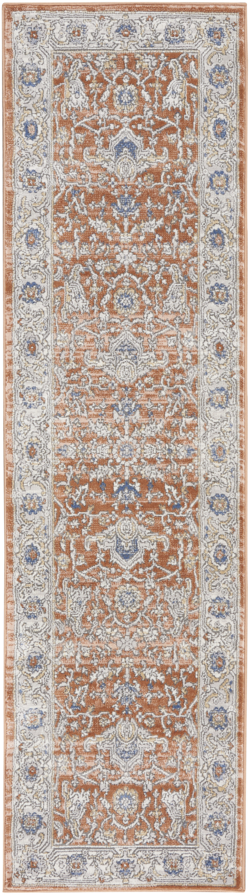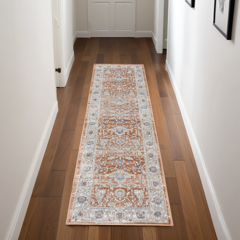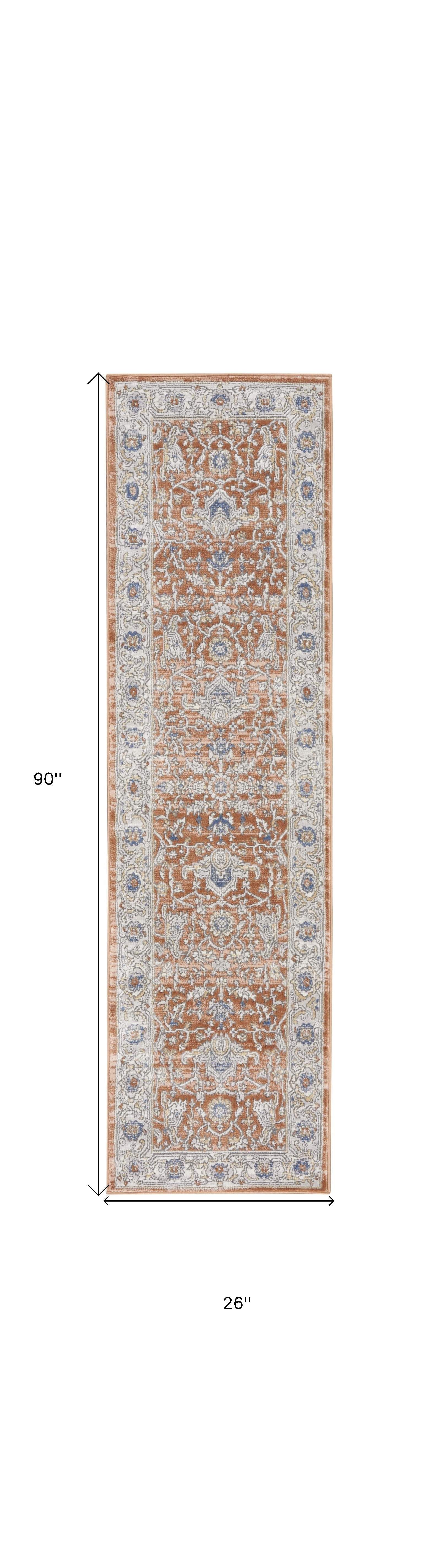 This 8-foot gray and red oriental runner rug, is a great way to add warmth to a room. Built to last, this rug crafted from polypropylene and polyester fibers is known for its durability and long lasting appeal. Rugs are a great way to showcase your style, hide imperfections, warm your home and reduce noise. This rectangular shaped rug features a abstract design that will add a functional and decorative accent to your space. This persian style runner makes a great accent for the hallway, in front of cabinets, in the laundry room, or any other space you need a narrow and long rug. 26-inch h x 90-inch w x 0.5-inch d.