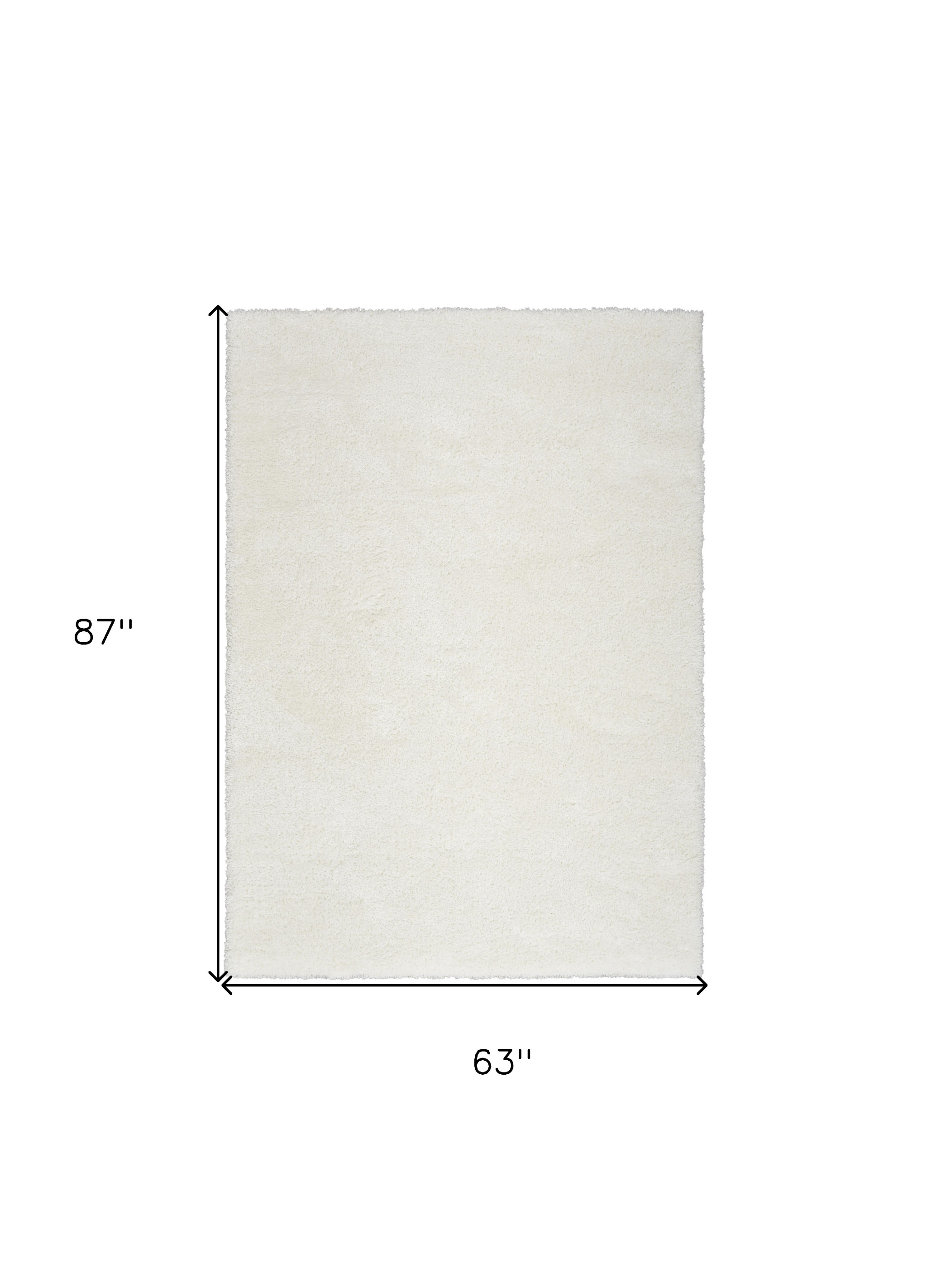 Add great coloration and comfortable texture to your space with this 5-foot x 7-foot ivory shag area rug. Built to last, this rug crafted from polyester fibers is known for its durability and long lasting appeal. Rugs are a great way to showcase your style, hide imperfections, warm your home and reduce noise. The retro shag construction of this luxurious rug will provide a soft and comfortable barrier to color tile and hardwood floors. This larger sized, transitional styled rug is ready to create a focal point or statement piece in your room. 63.00-inch h x 87.00-inch w x 1.00-inch d.