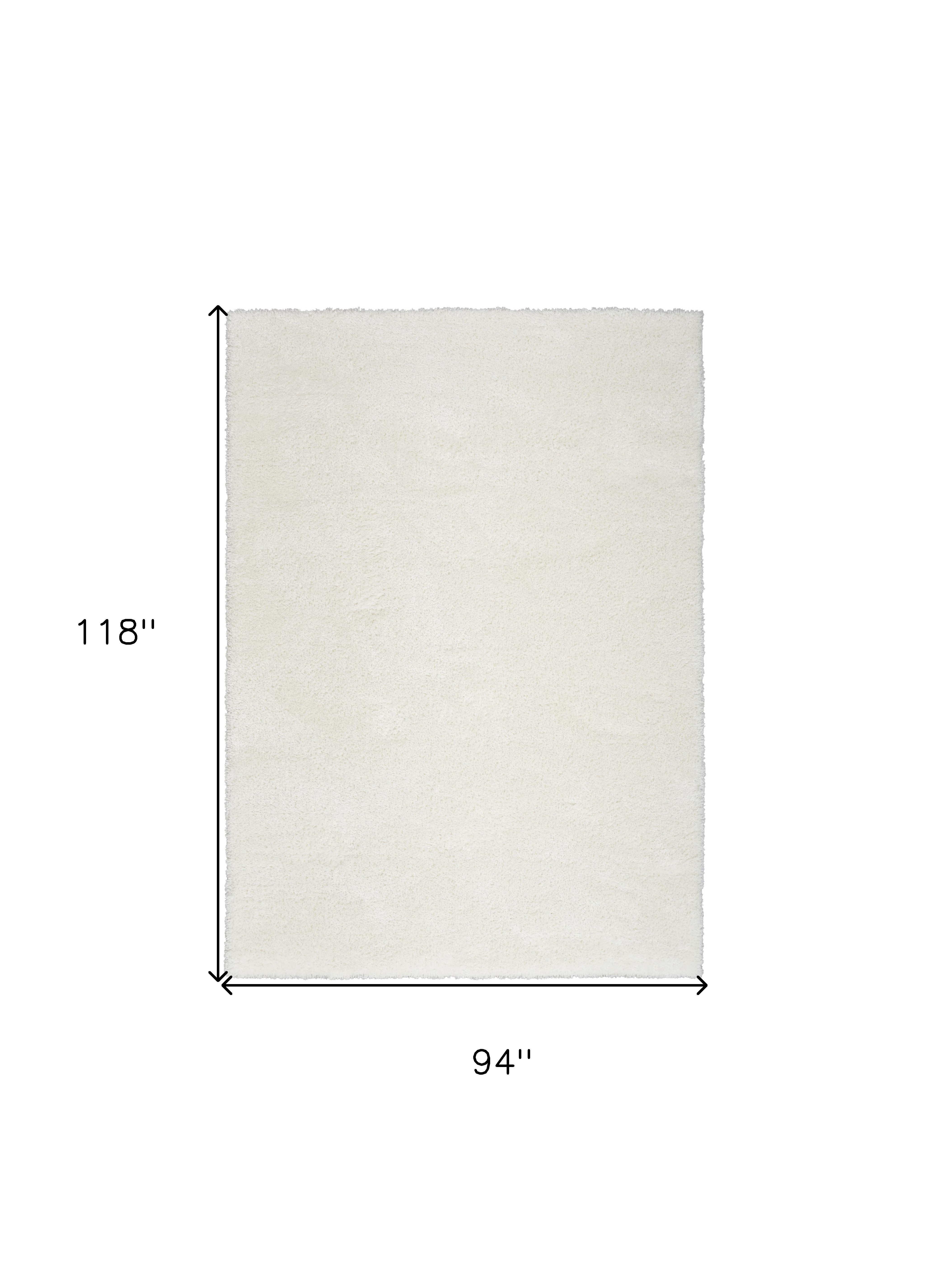 Add some artistry to your room with this 8-foot x 10-foot ivory shag area rug. Built to last, this rug crafted from polyester fibers is known for its durability and long lasting appeal. Rugs are a great way to showcase your style, hide imperfections, warm your home and reduce noise. This rectangle shaped rug flaunts a ivory color that will be a great way to accent your space. Solid colors are versatile and will blend with any existing decor style. The retro shag construction of this luxurious rug will provide a soft and comfortable barrier to color tile and hardwood floors. This larger sized, transitional styled rug is ready to create a focal point or statement piece in your room. 94-inch h x 118-inch w x 1-inch d.