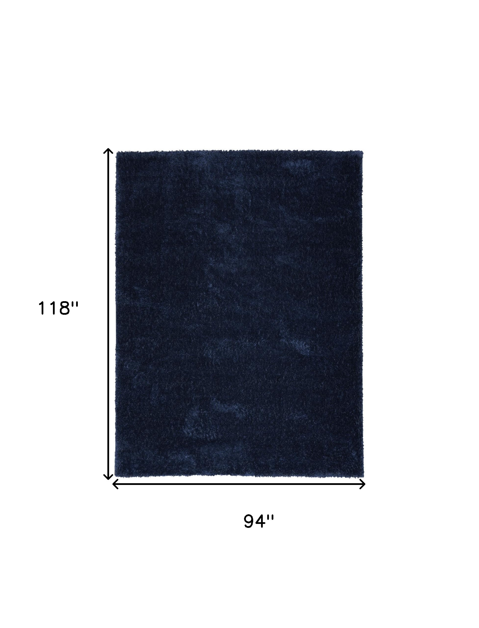 Add some artistry to your room with this 8-foot x 10-foot navy blue shag area rug. Built to last, this rug crafted from polyester fibers is known for its durability and long lasting appeal. Rugs are a great way to showcase your style, hide imperfections, warm your home and reduce noise. This rectangle shaped rug flaunts a navy blue color that will be a great way to accent your space. Solid colors are versatile and will blend with any existing decor style. The retro shag construction of this luxurious rug will provide a soft and comfortable barrier to color tile and hardwood floors. This larger sized, transitional styled rug is ready to create a focal point or statement piece in your room. 94-inch h x 118-inch w x 1-inch d.