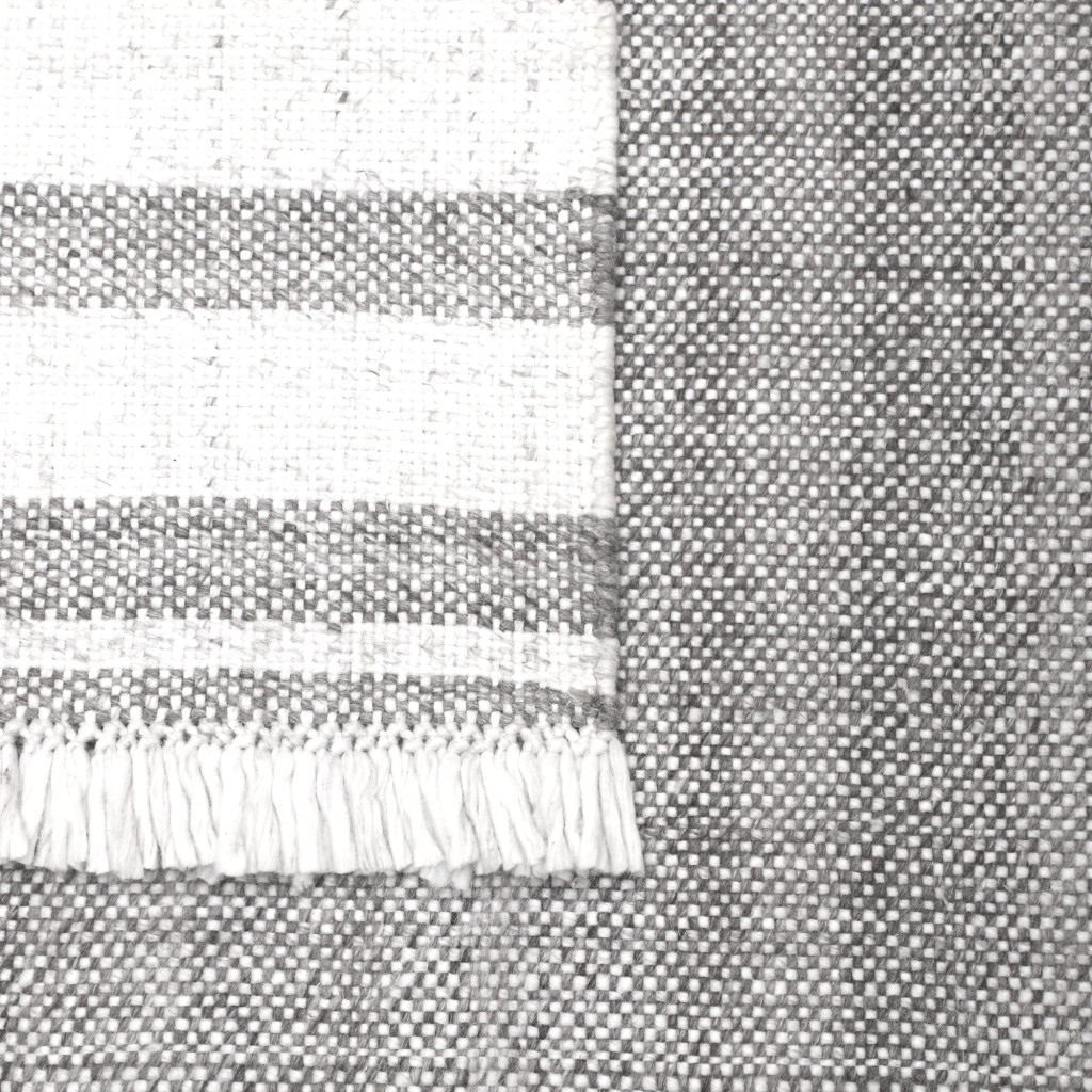 Add great coloration and comfortable texture to your space with this 5-foot x 7-foot gray striped handmade indoor outdoor area rug. This rectangle shaped rug features a striped design that will work well both indoors or out. A classic shape marries with good looking design for your living room, hall, bedroom, porch, patio, or poolside. Ideal for outdoor spaces or high traffic areas with kids and pets, this rug is made from heavy duty 100% pet that is stain resistant to help repel water, dirt, and stains. Makes a great way to dress up your patio, porch, or poolside, but also works well as a durable and easy to maintain option in the kitchen, family room, or mudroom. 60-inch h x 93-inch w x 0.27-inch d.