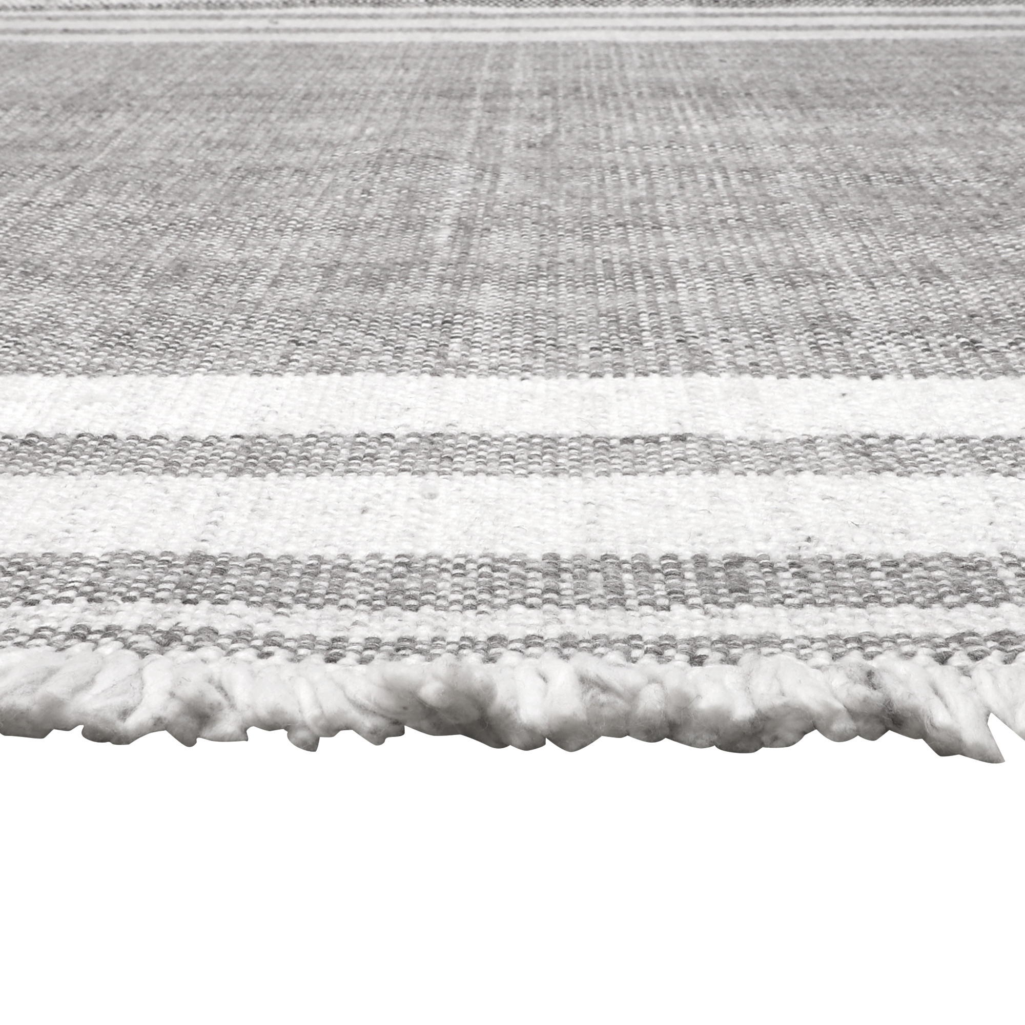 Add some artistry to your room with this 8-foot x 10-foot gray striped handmade indoor outdoor area rug. This rectangle shaped rug features a striped design that will work well both indoors or out. A classic shape marries with good looking design for your living room, hall, bedroom, porch, patio, or poolside. Ideal for outdoor spaces or high traffic areas with kids and pets, this rug is made from heavy duty 100% pet that is stain resistant to help repel water, dirt, and stains. Makes a great way to dress up your patio, porch, or poolside, but also works well as a durable and easy to maintain option in the kitchen, family room, or mudroom. 93-inch h x 117-inch w x 0.27-inch d.