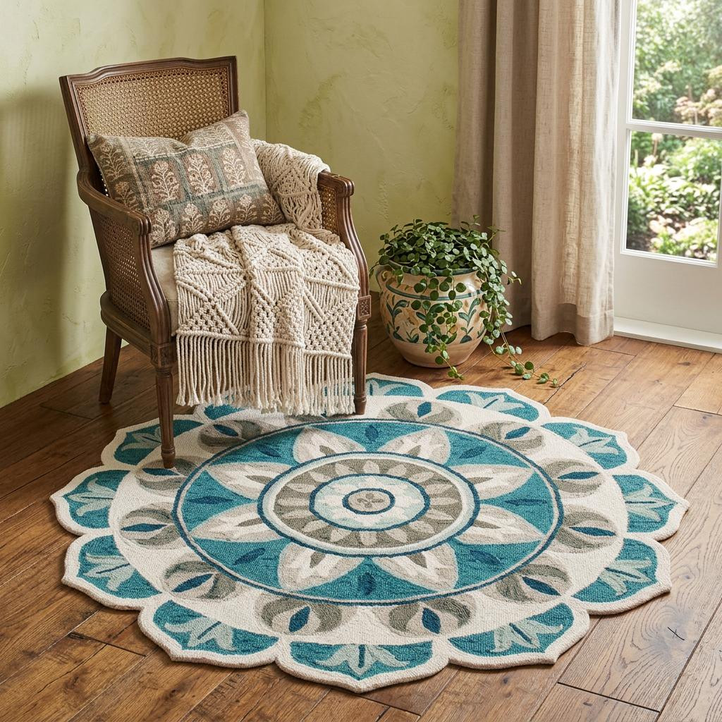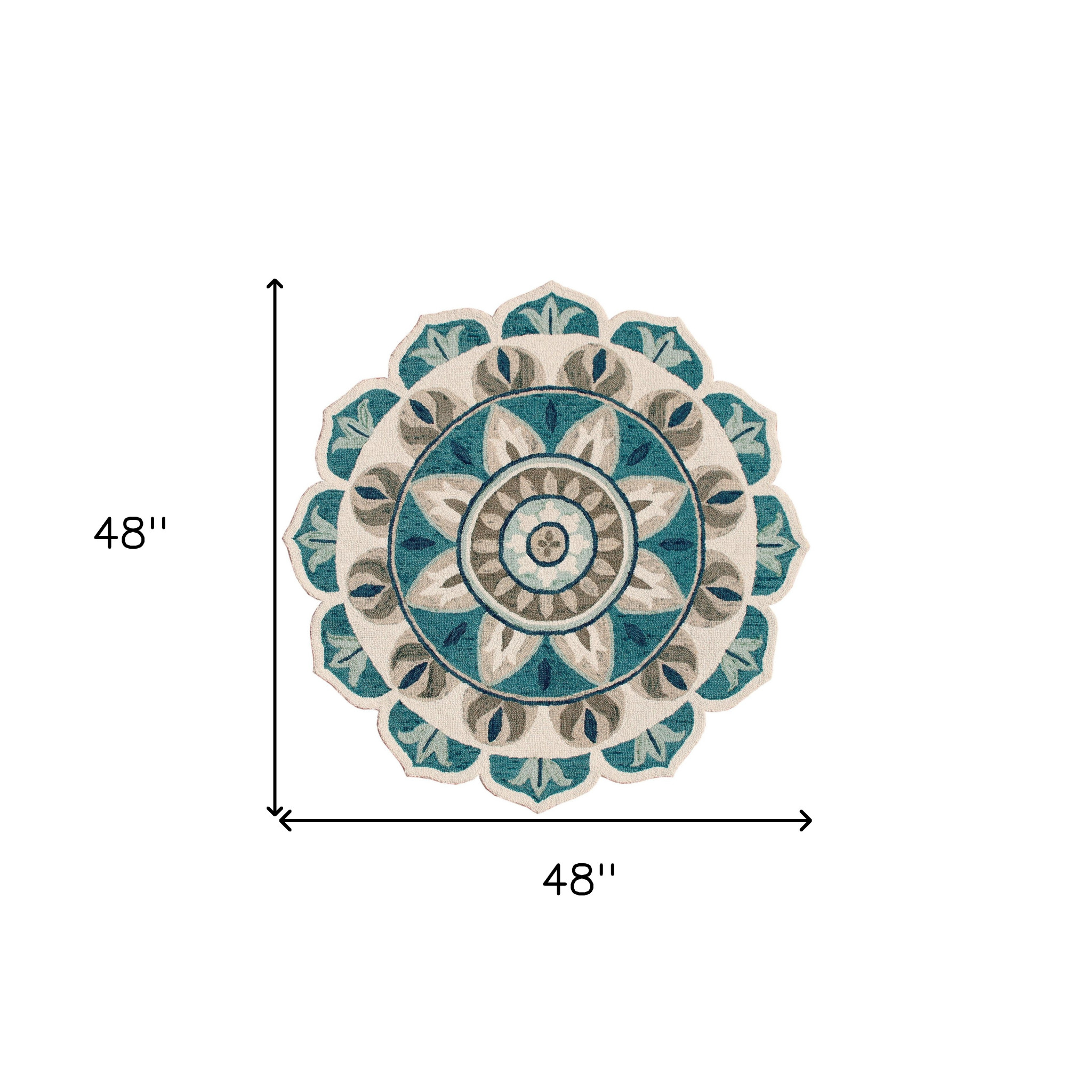 This 4-foot blue round wool floral hand tufted area rug, is a great way to add warmth to a room. This geometric round shaped rug features a floral pattern in blue that combines a good looking print with a unique and updated shape. The mix of shape, color, and design gives this rug refreshing visual interest. Place this area rug against a hardwood or tile floor and it will enliven your living space with style and sophistication. 0.31-inch H x 48-inch W x 48-inch D