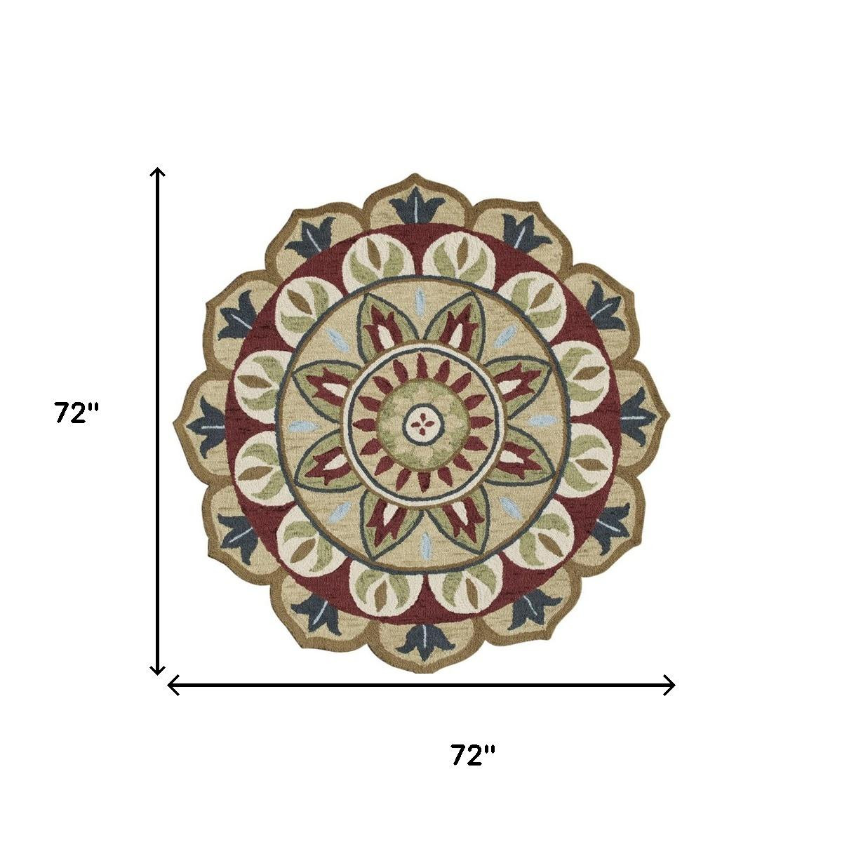 This 6-foot x 6-foot red round wool floral hand tufted area rug, is a great way to add warmth to a room. This geometric round shaped rug features a floral pattern in red that combines a good looking print with a unique and updated shape. The mix of shape, color, and design gives this rug refreshing visual interest. Area Rugs help to give warmth and sense of home to your space. 0.31-inch H x 72-inch W x 72-inch D