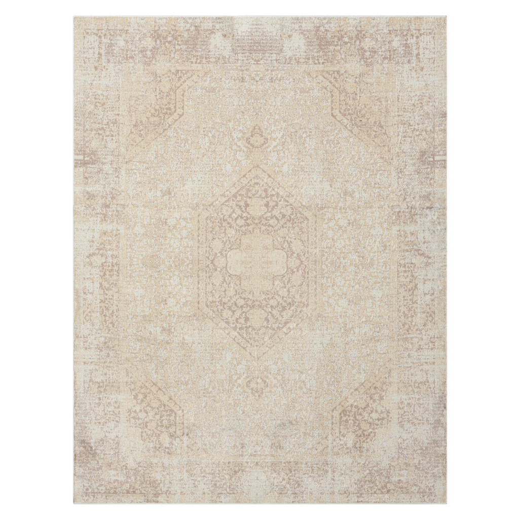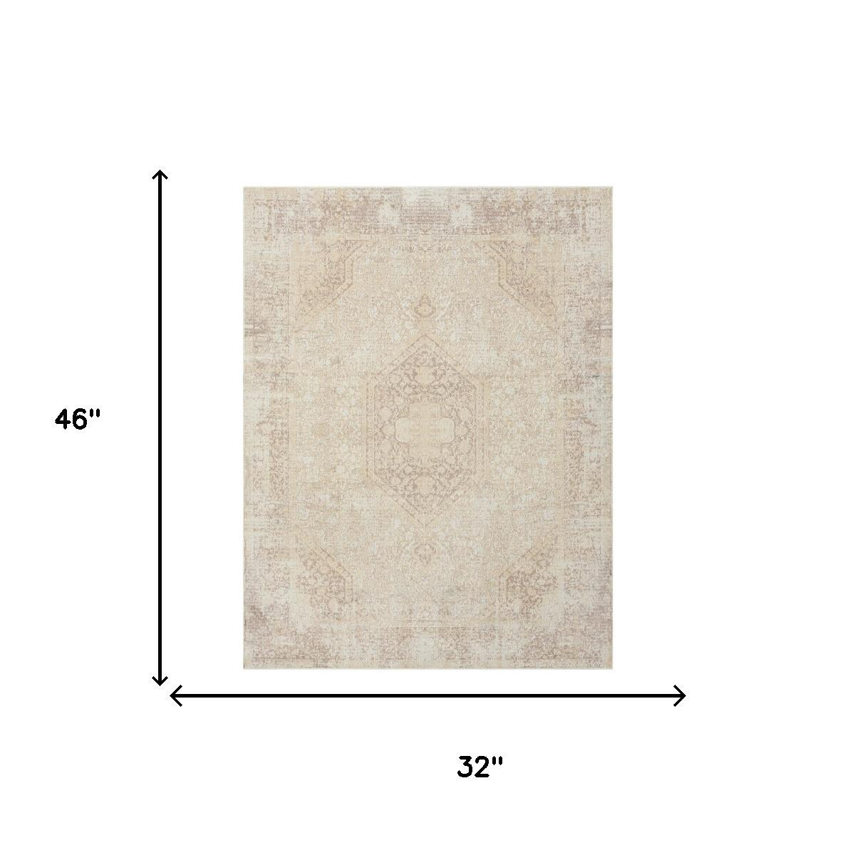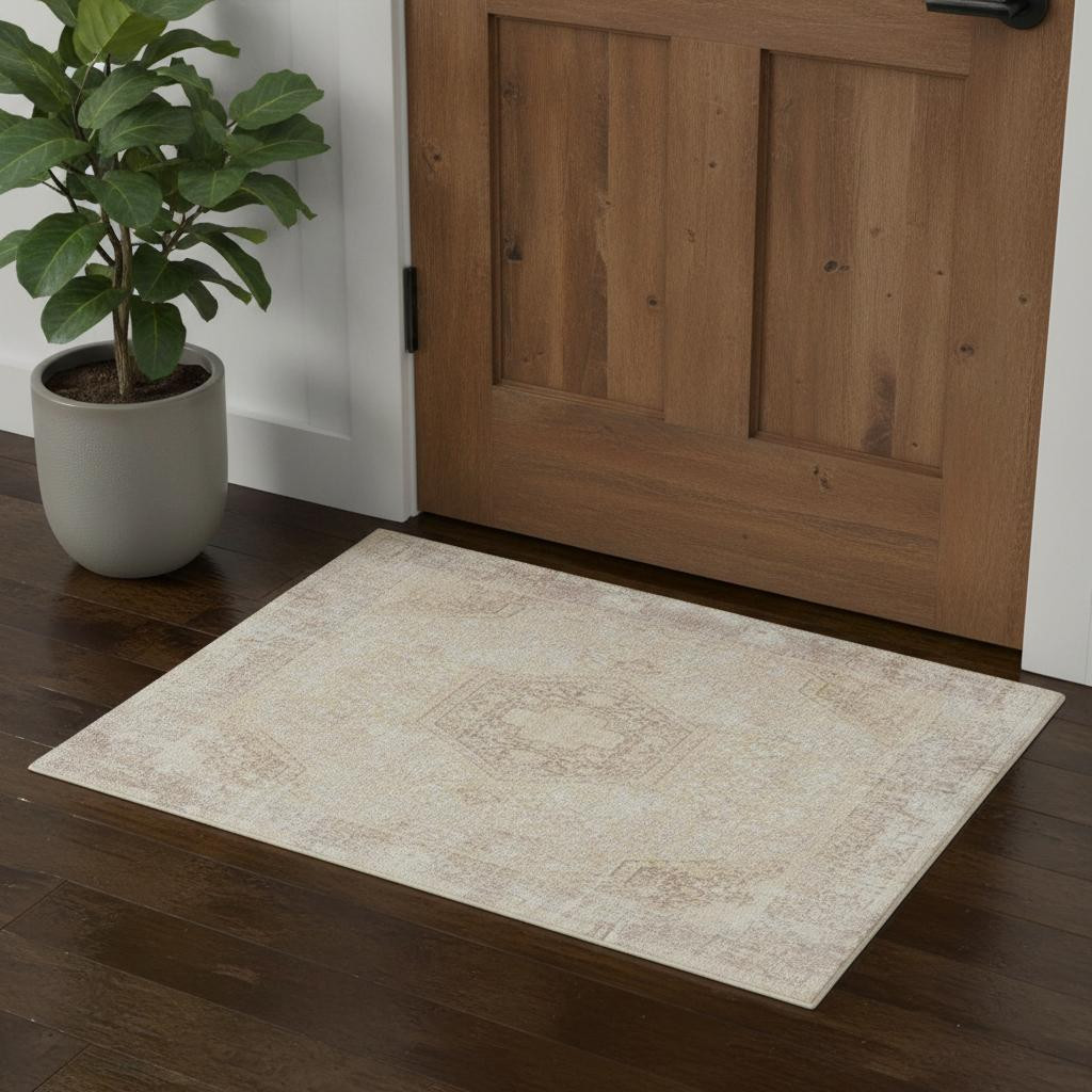 This 2-foot x 3-foot beige medallion washable non skid area rug, is a great way to add warmth to a room. This rectangle shaped rug features a medallion design in beige to give it visual interest. A classic shape marries with good looking design for your space Ideal for spaces with kids and pets, this rug is stain resistant to help repel stains and spilled liquids. Place this area rug against a hardwood or tile floor and it will enliven your living space with style and sophistication. 0.18-inch H x 46-inch W x 31.5-inch D