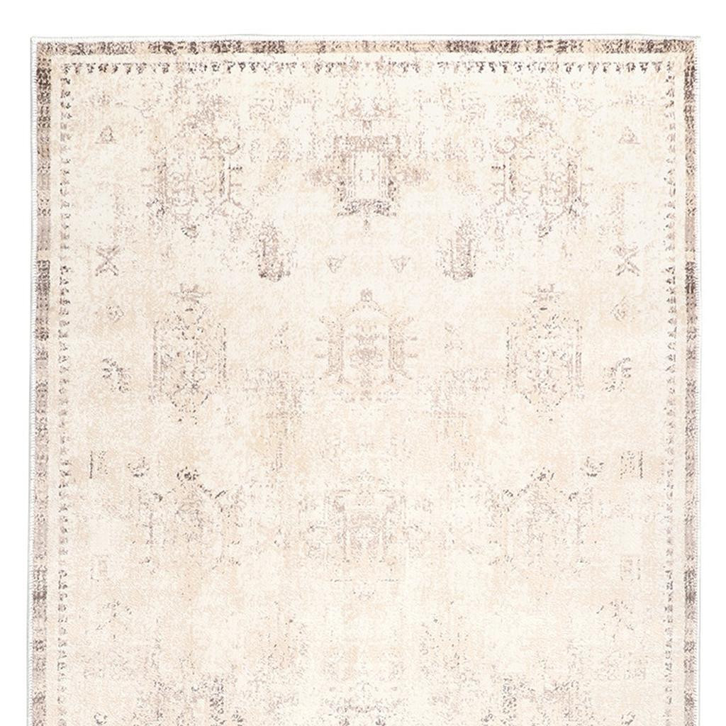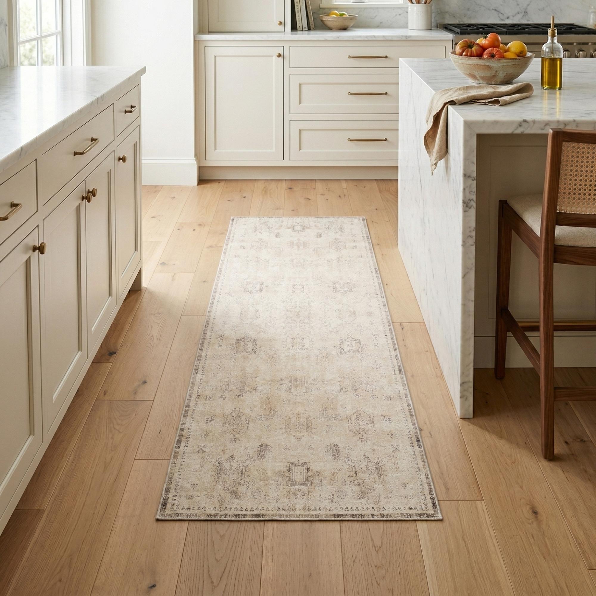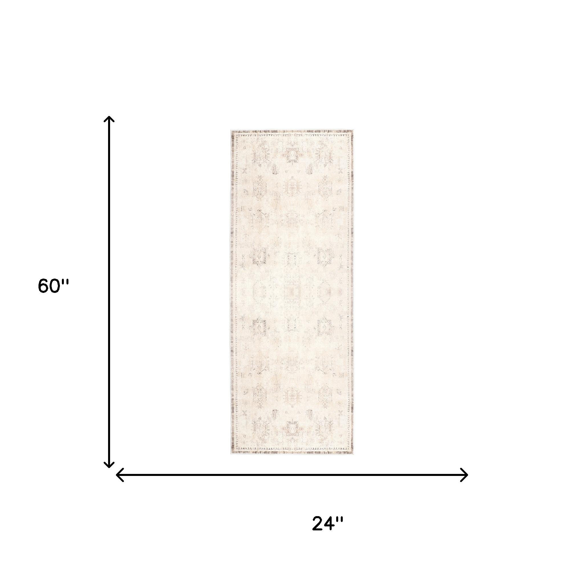 Set an inviting tone in your space with this 2-foot x 5-foot beige abstract washable non skid area rug. This rectangle shaped rug features a abstract design in beige to give it visual interest. A classic shape marries with good looking design for your space Ideal for spaces with kids and pets, this rug is stain resistant to help repel stains and spilled liquids. Area Rugs help to give warmth and sense of home to your space. 0.18-inch H x 60-inch W x 23.6-inch D