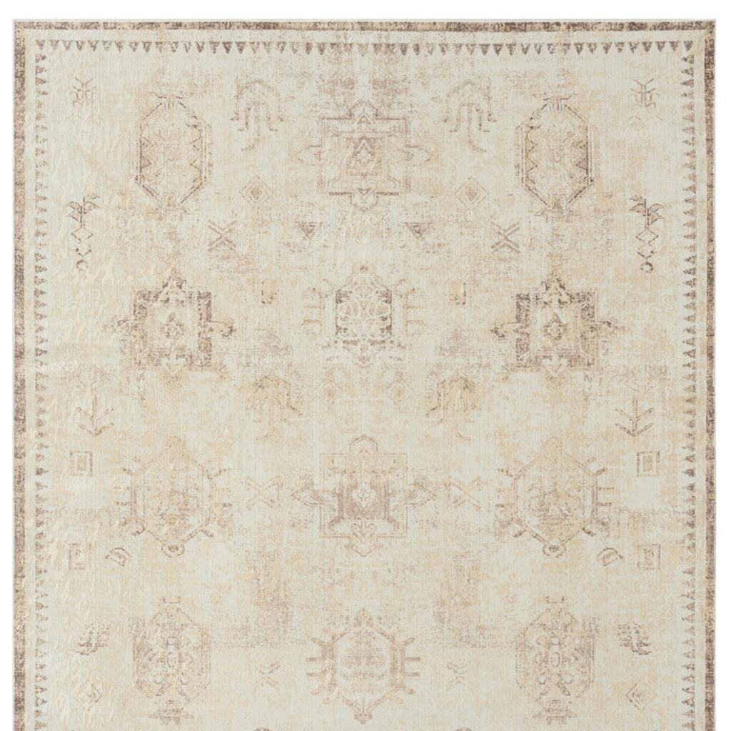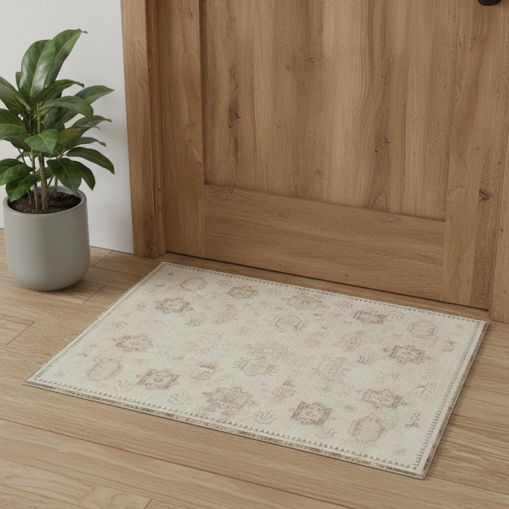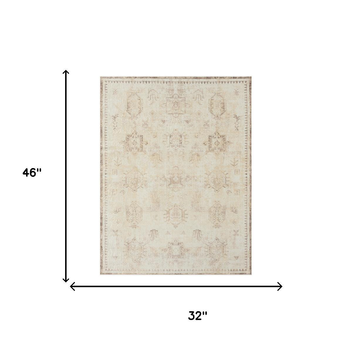 Set an inviting tone in your space with this 2-foot x 3-foot beige abstract washable non skid area rug. This rectangle shaped rug features a abstract design in beige to give it visual interest. A classic shape marries with good looking design for your space Ideal for spaces with kids and pets, this rug is stain resistant to help repel stains and spilled liquids. Place this area rug against a hardwood or tile floor and it will enliven your living space with style and sophistication. 0.18-inch H x 46-inch W x 31.5-inch D