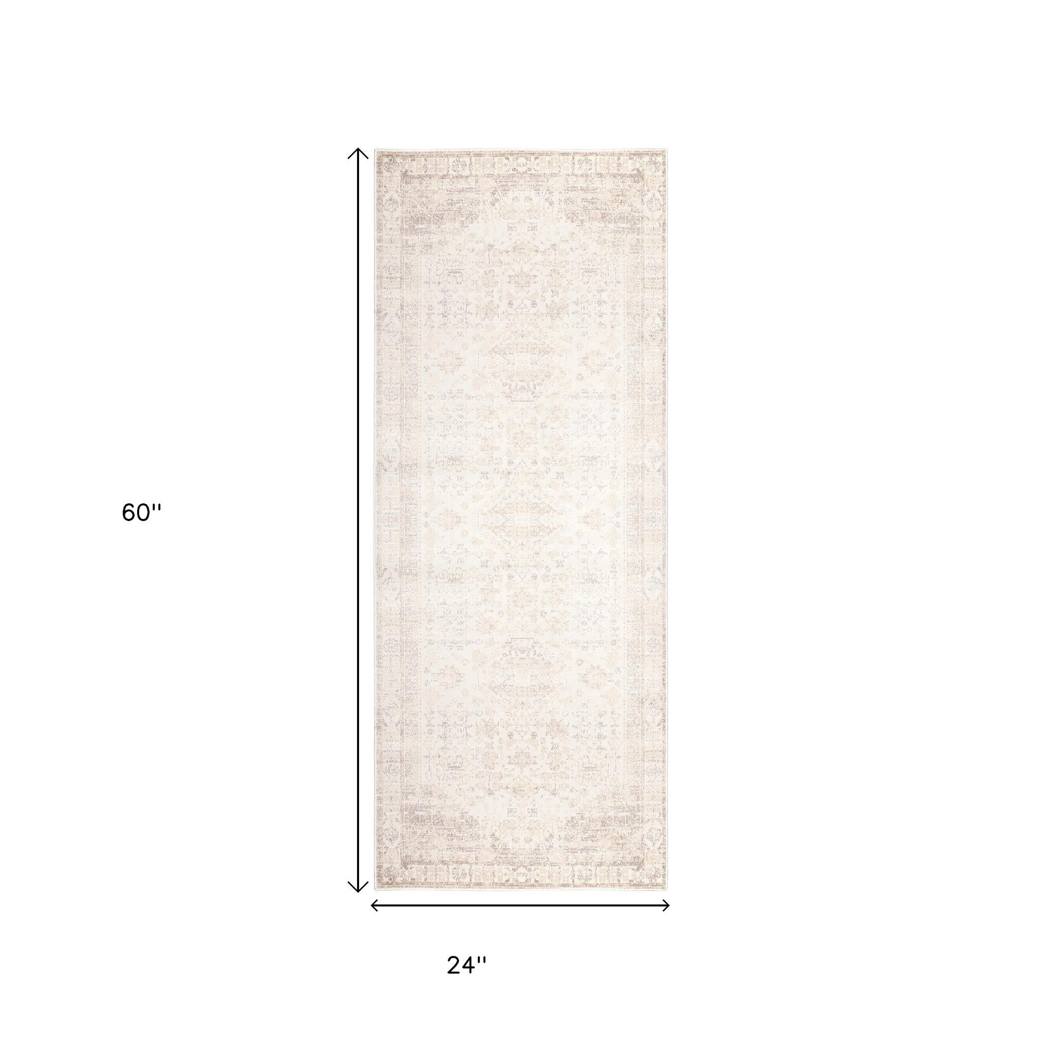 This 2-foot x 5-foot beige medallion runner rug, is a great way to add warmth to a room. Ideal for spaces with kids and pets, this rug is stain resistant to help repel dirt and spilled liquids. Built to last, this rug crafted from polyester fibers is known for its durability and long lasting appeal. This transitional style runner makes a great accent for the hallway, in front of cabinets, in the laundry room, or any other space you need a narrow and long rug. 24.00-inch h x 60.00-inch w x 0.18-inch d.