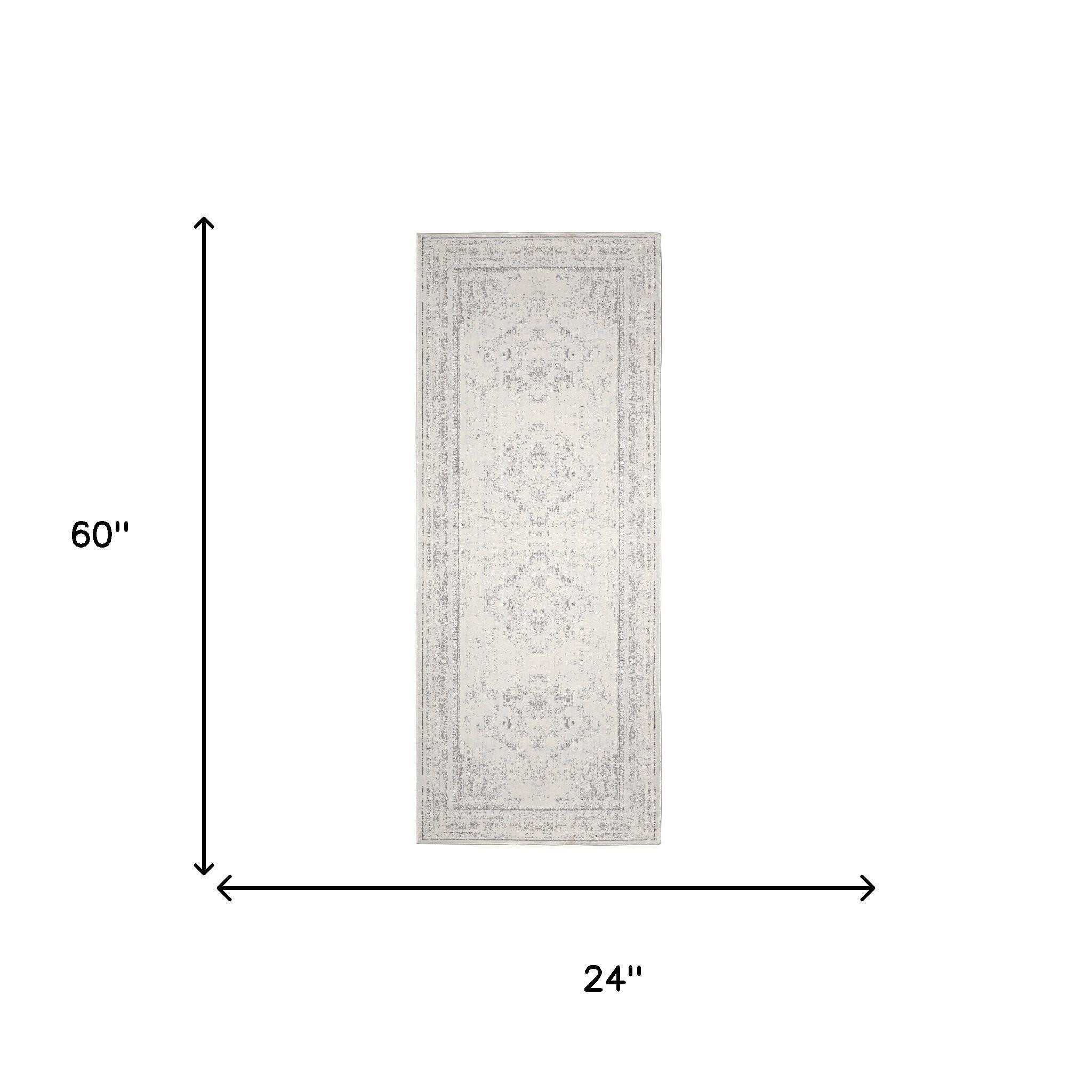 Set an inviting tone in your space with this 2-foot x 5-foot gray medallion washable non skid area rug. This rectangle shaped rug features a medallion design in gray to give it visual interest. A classic shape marries with good looking design for your space Ideal for spaces with kids and pets, this rug is stain resistant to help repel stains and spilled liquids. Area Rugs help to give warmth and sense of home to your space. 0.18-inch H x 60-inch W x 23.6-inch D