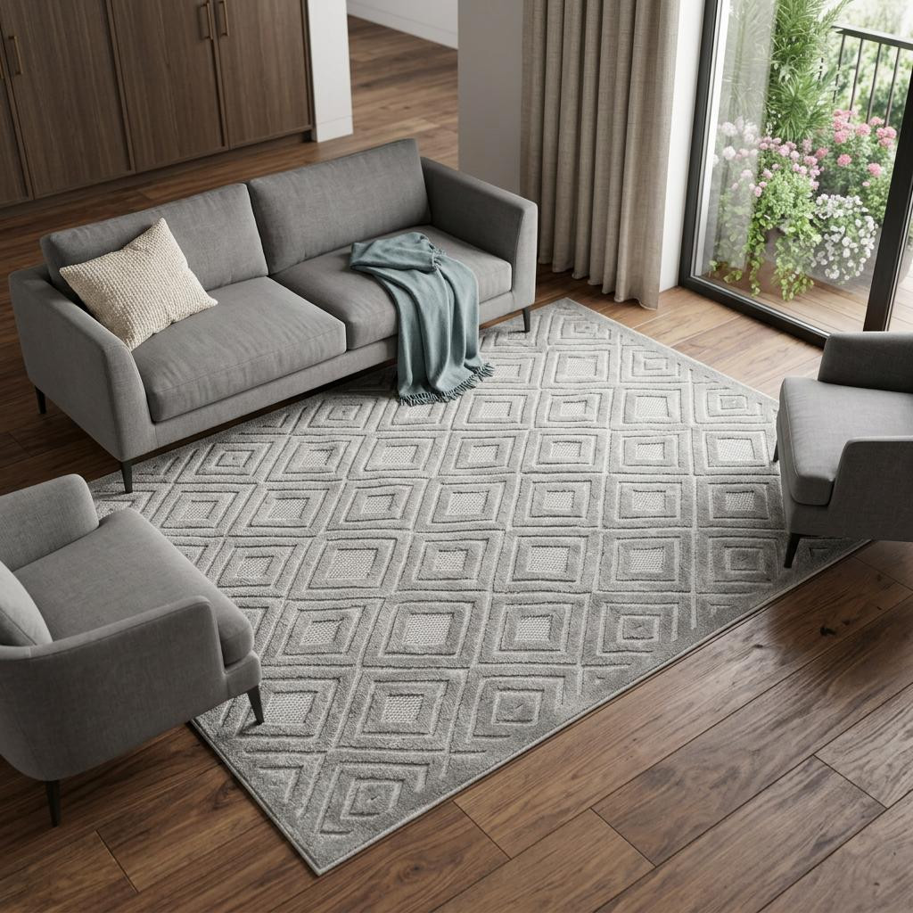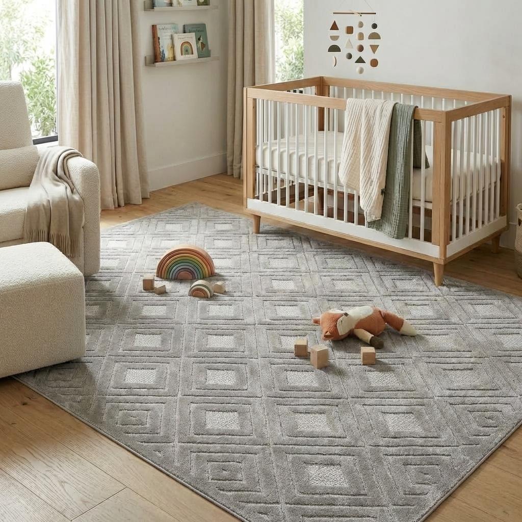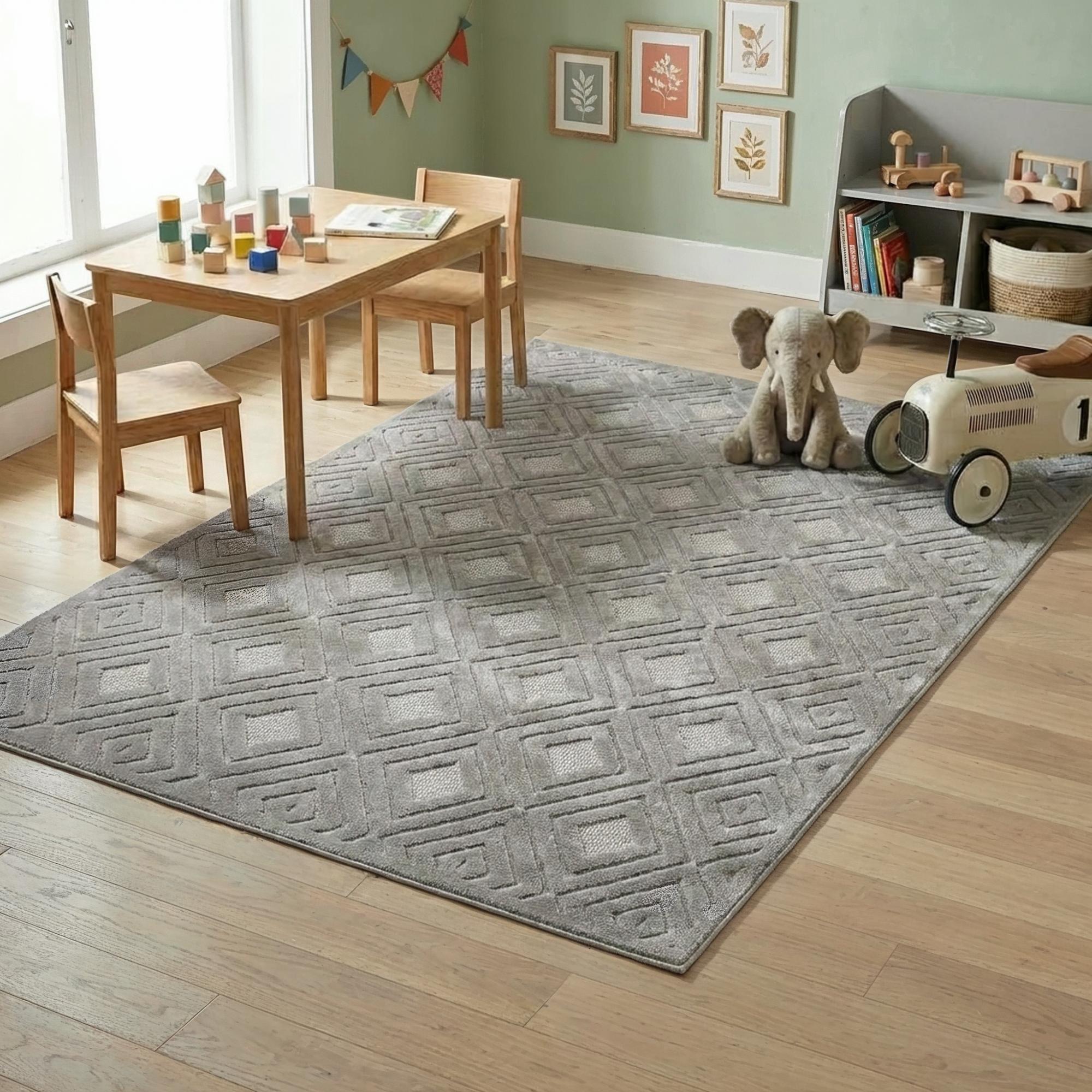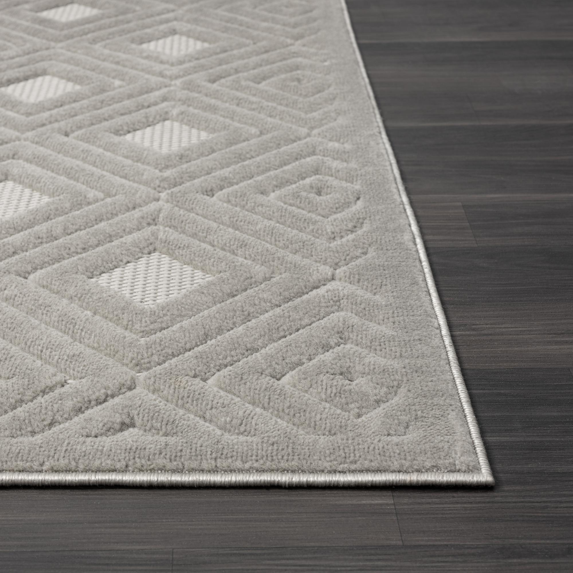 Set an inviting tone in your space with this 8-foot x 10-foot gray geometric area rug. This rectangle shaped rug features a geometric design in gray to give it visual interest. A classic shape marries with good looking design for your space Ideal for spaces with kids and pets, this rug is stain resistant to help repel stains and spilled liquids. Area Rugs help to give warmth and sense of home to your space. 0.39-inch H x 118-inch W x 94-inch D