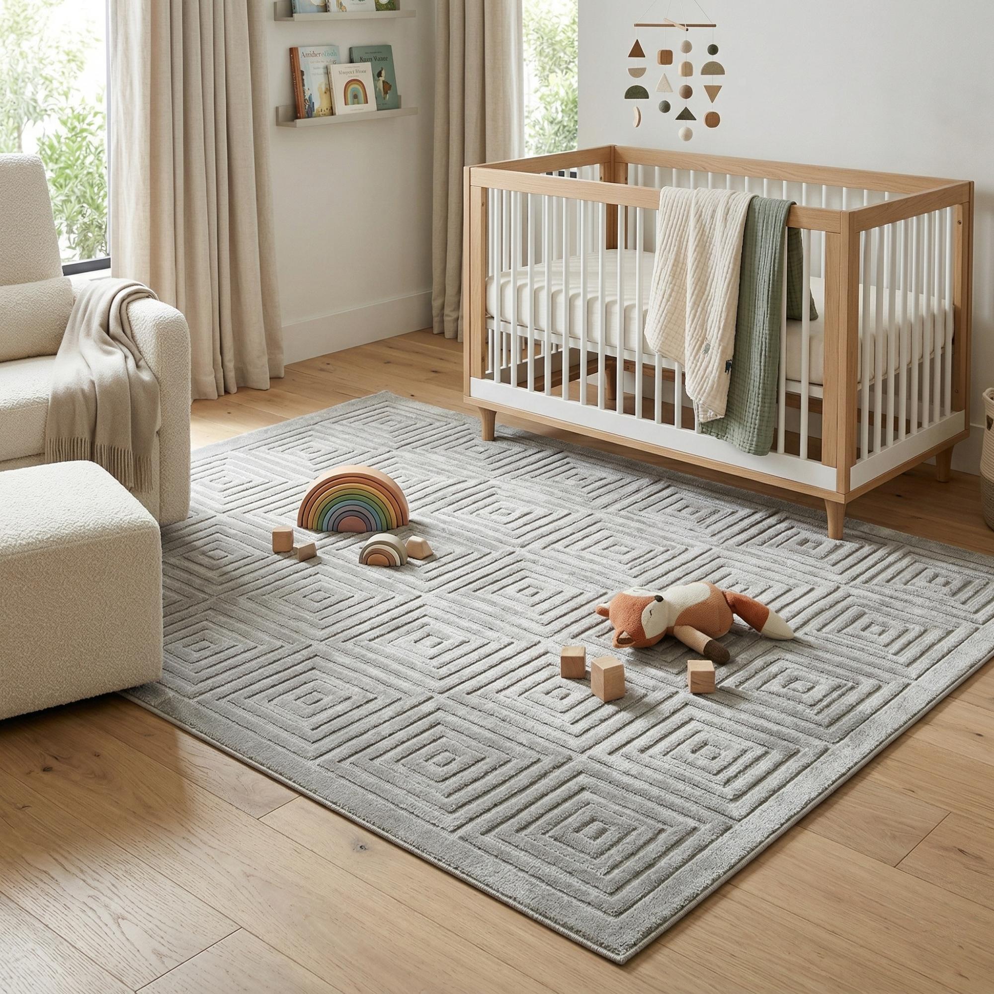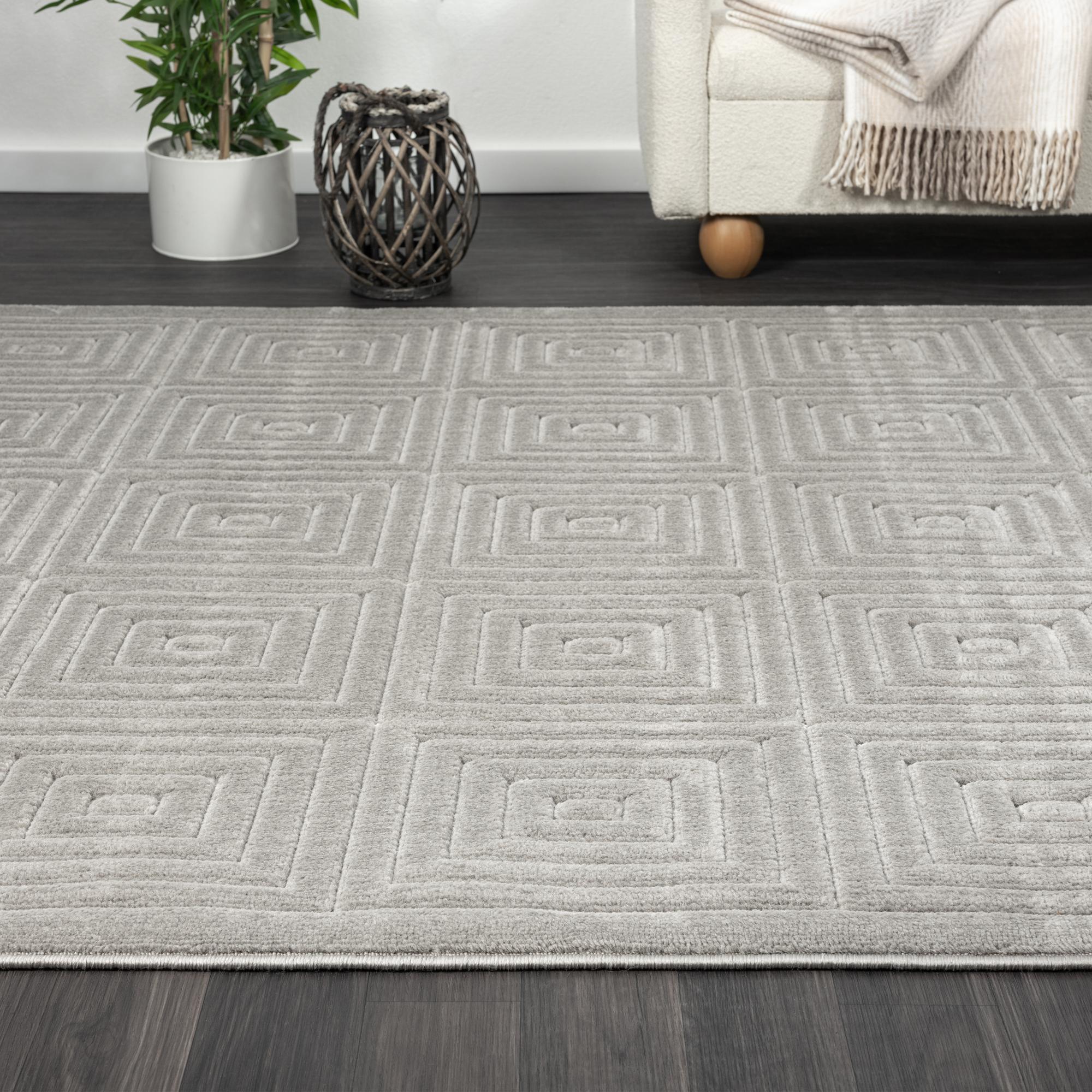 This 5-foot x 7-foot gray geometric area rug, is a great way to add warmth to a room. This rectangle shaped rug features a geometric design in gray to give it visual interest. A classic shape marries with good looking design for your space Ideal for spaces with kids and pets, this rug is stain resistant to help repel stains and spilled liquids. Place this area rug against a hardwood or tile floor and it will enliven your living space with style and sophistication. 0.39-inch H x 84-inch W x 60-inch D